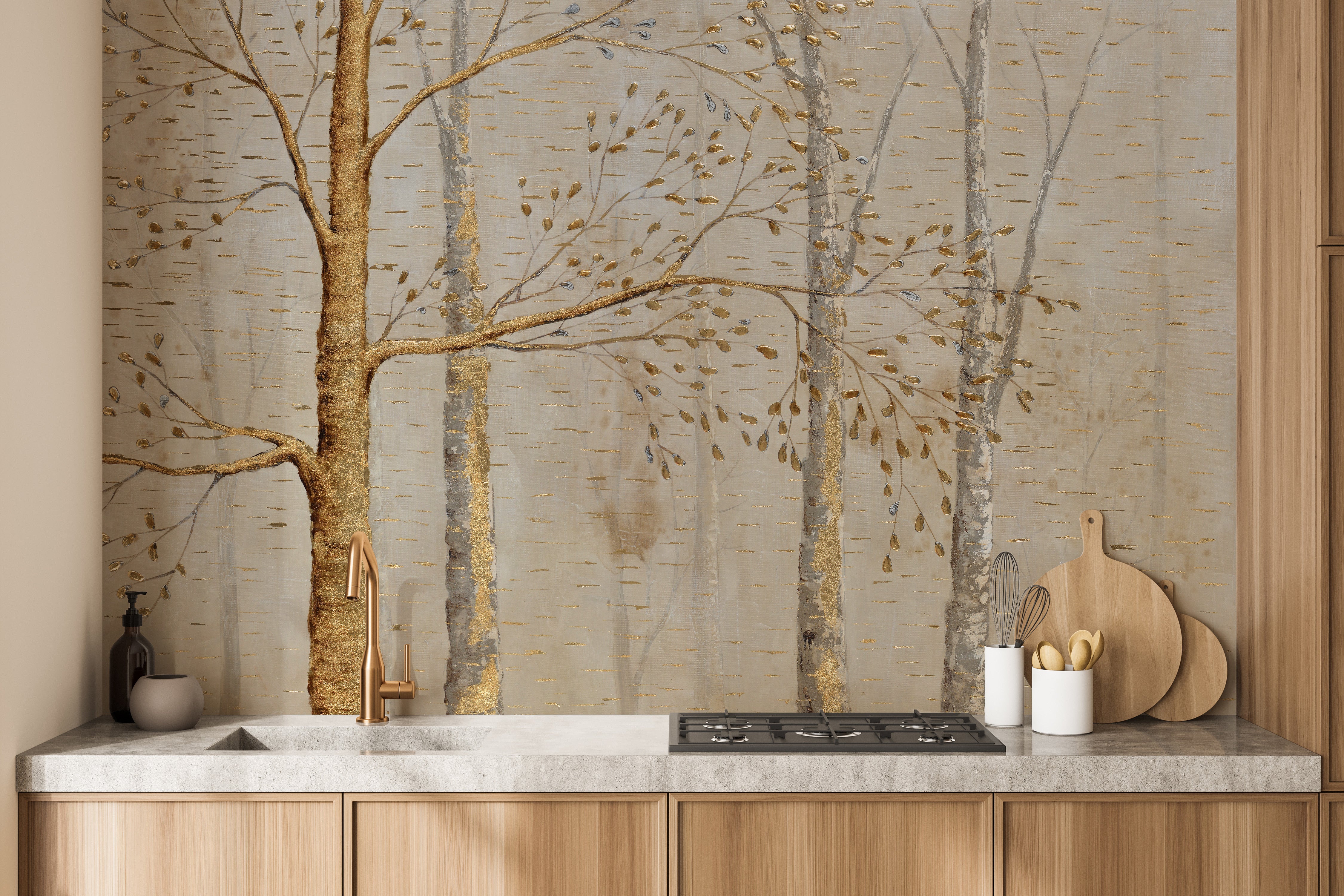 Invest in our Gold Background Greenery Wallpaper today and bring a fresh, sophisticated look to your space.