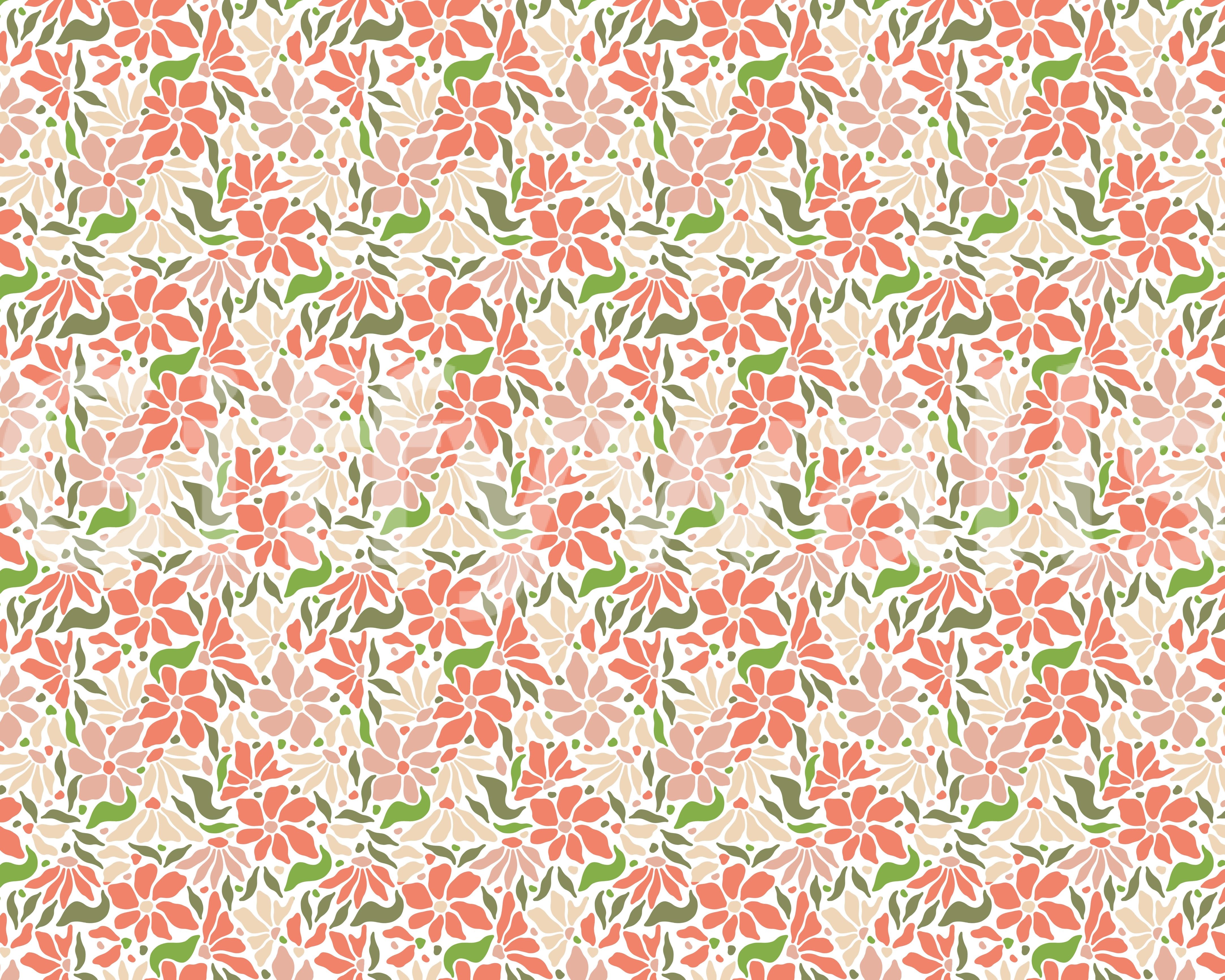 70s-inspired coral green floral wallpaper
