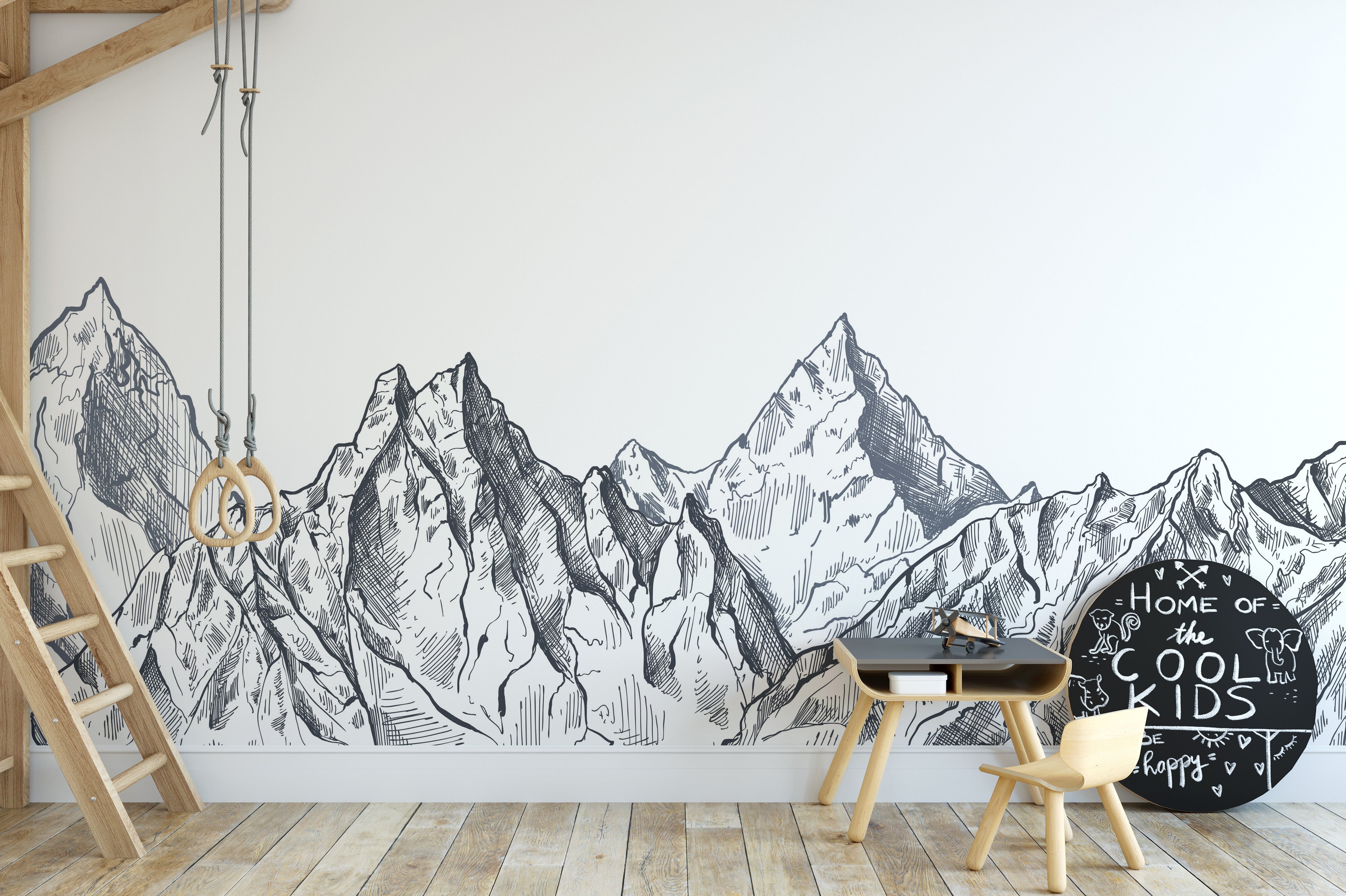 Our hand-drawn mystic mountain wallpaper mural will give your room a dreamlike look. Because they were carefully drawn by hand. This 3D design will make your wall come to life and add a beautiful touch to your room. Use it as a feature wall in a room that is mostly simple. The bold black outline on the mountains gives them depth and texture. Making them look very sophisticated. It would look great in the living room or on the patio. In other words, if you want your room to look contemporary. This black and white mountain wallpaper is the thing to do it.