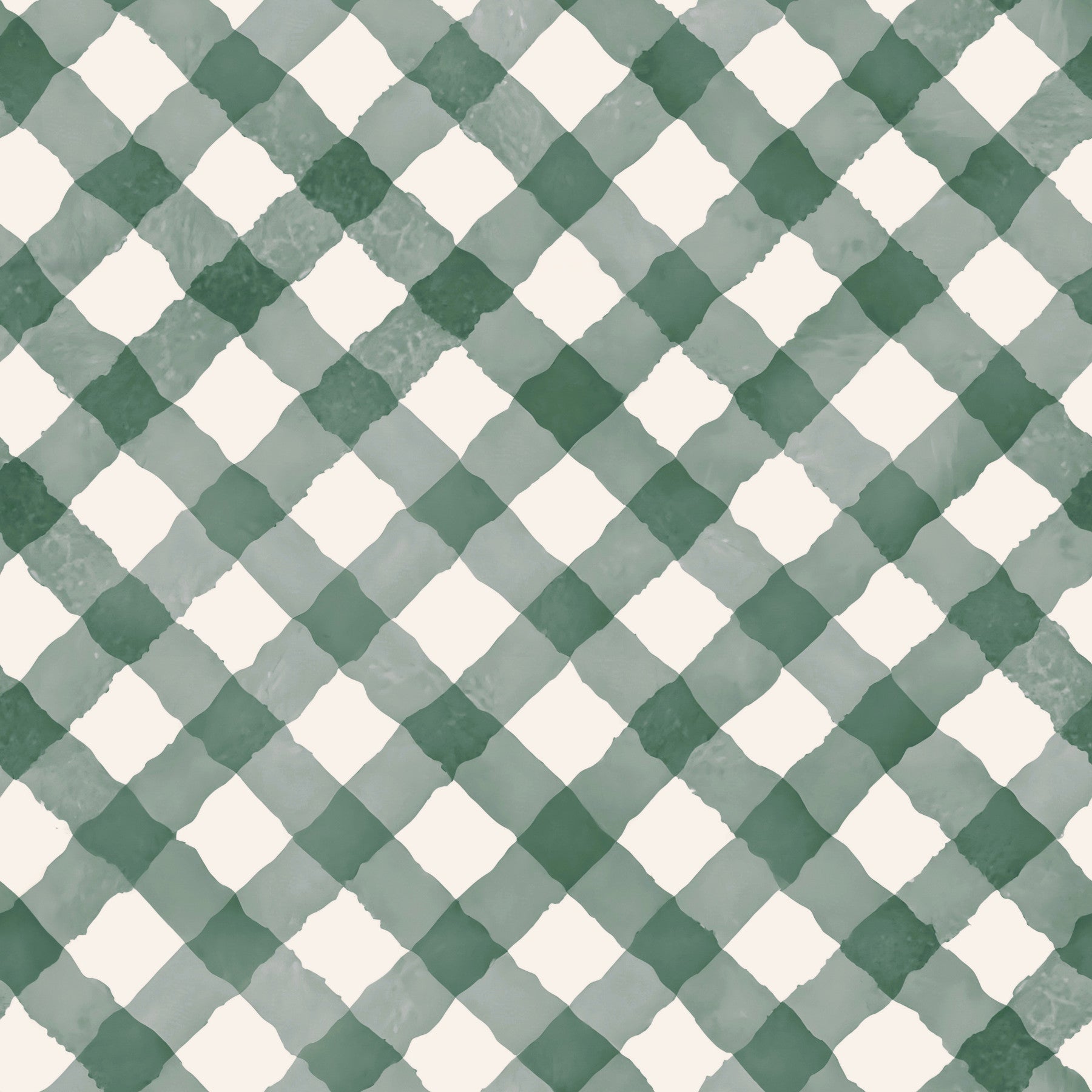 Evoke a feeling of cozy holiday gatherings with our Hand Painted Dark Green Festive Gingham wallpaper. This charming design features a classic gingham pattern brought to life with a textured, hand-painted effect. The deep, rich green hue conjures images of evergreen forests and festive feasts, while the creamy off-white provides a warm and inviting contrast. Perfect for creating a rustic yet elegant atmosphere in any room, this wallpaper adds a touch of timeless charm. Whether you're decorating a kitchen, bedroom, or dining space, this wallpaper brings a nostalgic touch and a sophisticated feel to any setting. Infuse your space with the spirit of the season or enjoy its classic appeal all year round. The watercolor texture makes it interesting and unique from other geometrical wallpapers.