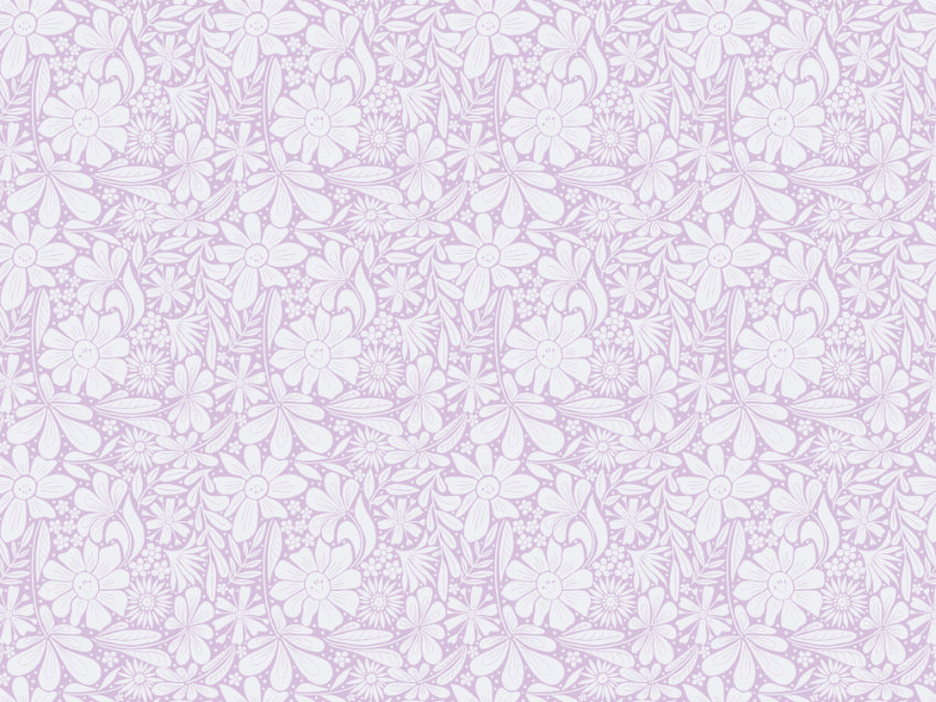 Subtle lilac wallpaper with dainty happy blooms details.