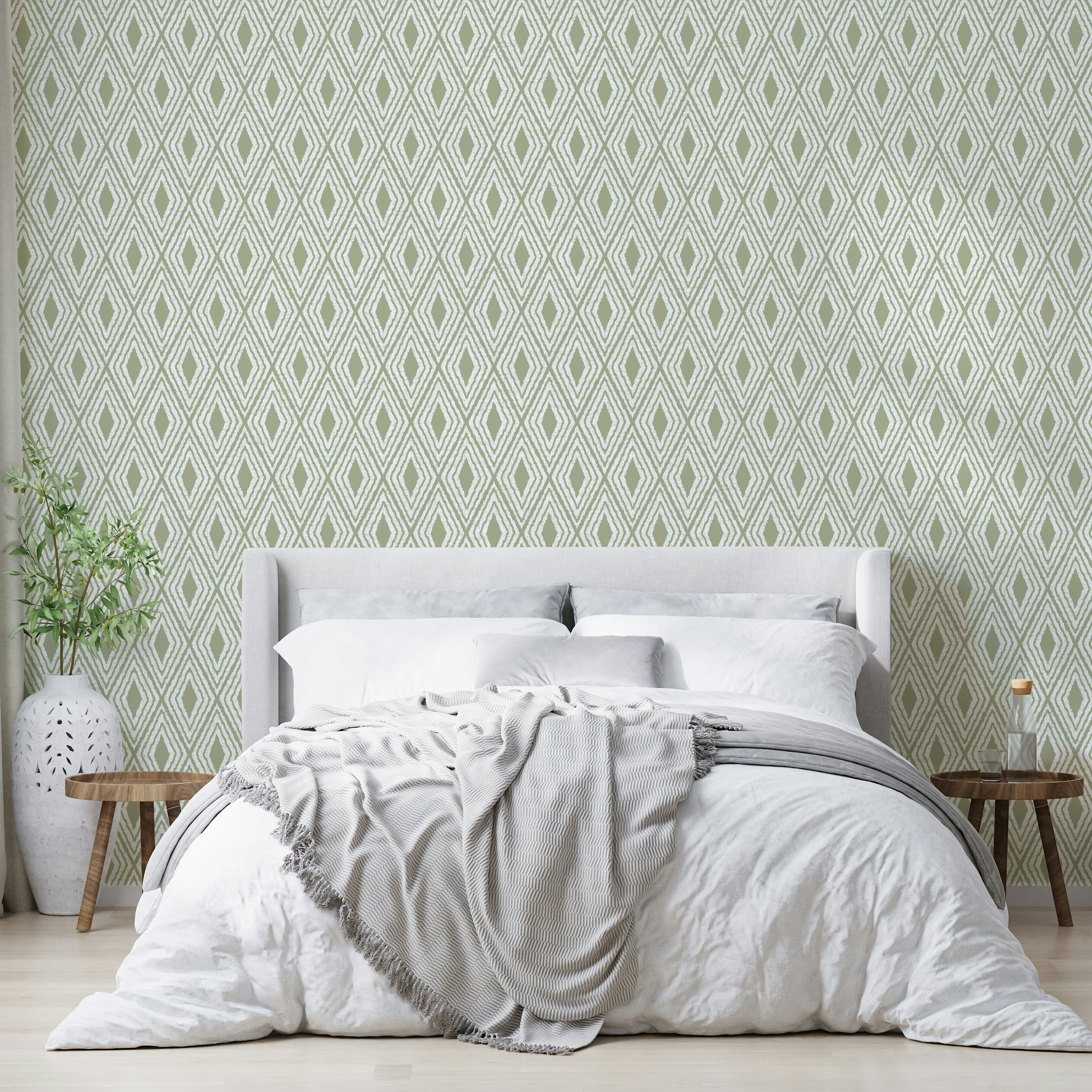 Harlequin Diamond Boho Muted Pastel Green Wallpaper⁠