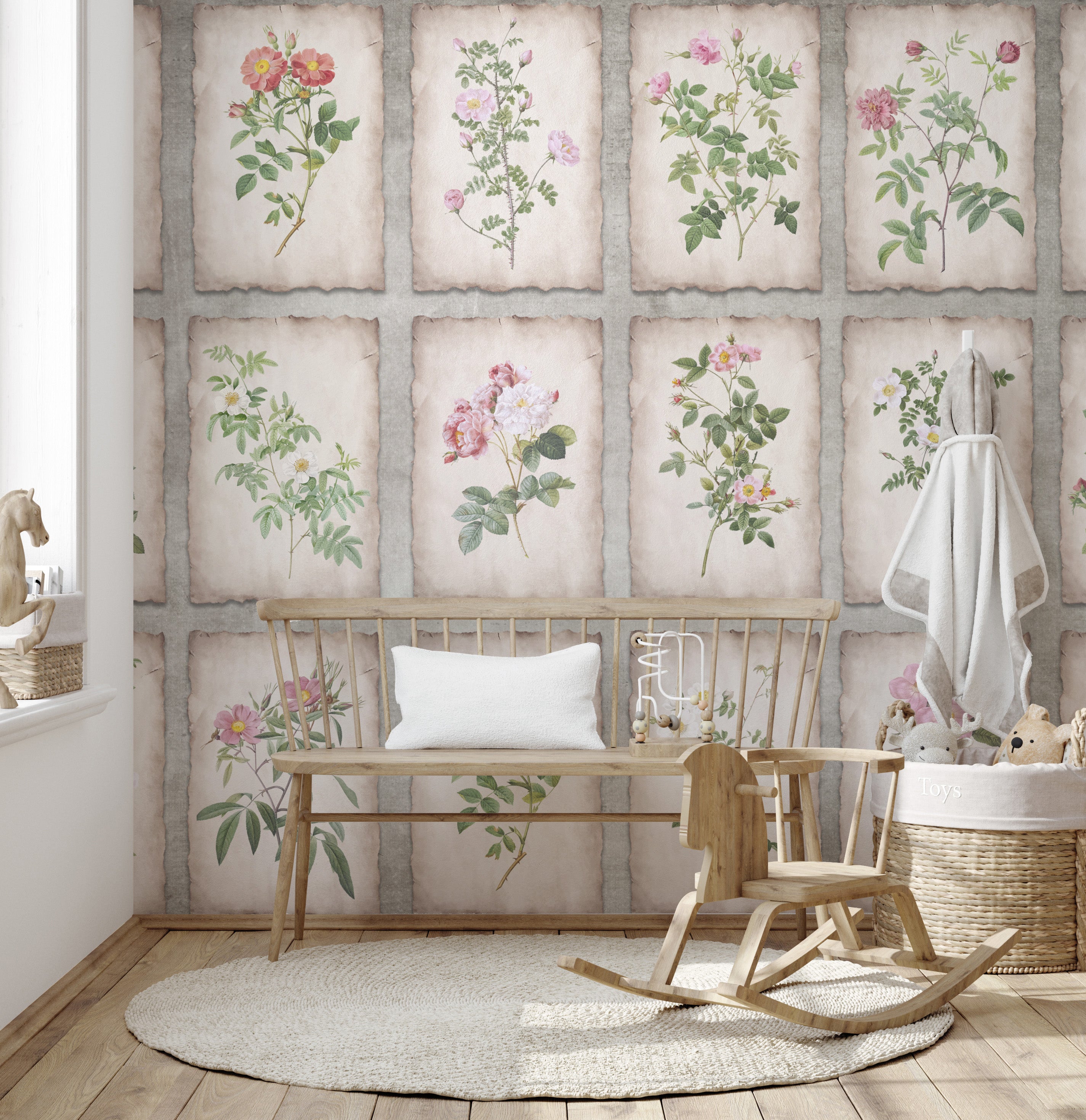 The heritage botanicals framed wall mural is a celebration of flora's enduring beauty. Each frame, a window into the botanical illustrations of yesteryears, captures the essence of a blooming garden. This product of flower wallpaper is a delicate homage to the artistry of nature, each petal and leaf rendered with exquisite detail. Crafted for the discerning eye, these murals bring forth the elegance of roses, the charm of daisies, and the grace of wildflowers in a dance of colors and textures. They beckon the onlooker to a bygone era of hand-touched illustrations, where each brushstroke tells a story. Ideal for enveloping your surroundings with a breath of floral elegance, this botanical wallpaper murals stand as a testament to the timeless allure of botanical art. They don't just adorn a wall they narrate the silent poetry of nature's finest works.