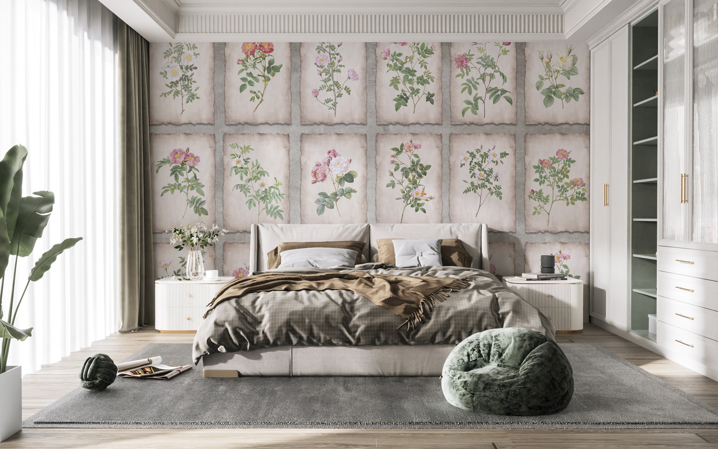 Framed botanicals mural with timeless floral beauty