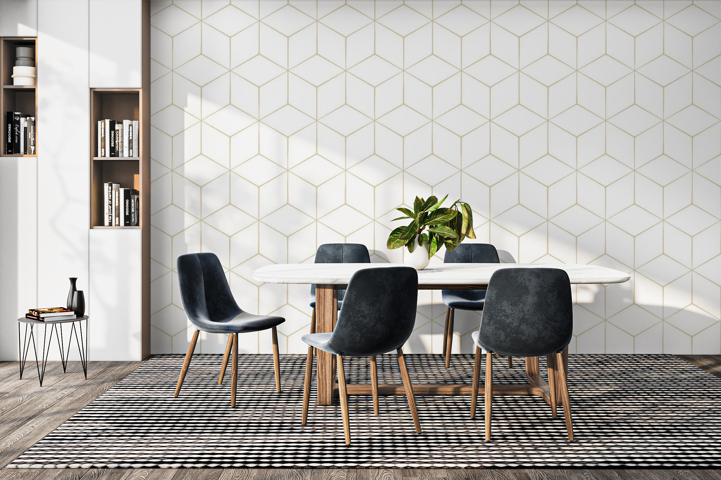 Reusable Hexagonal Geometric Wallpaper for Interiors