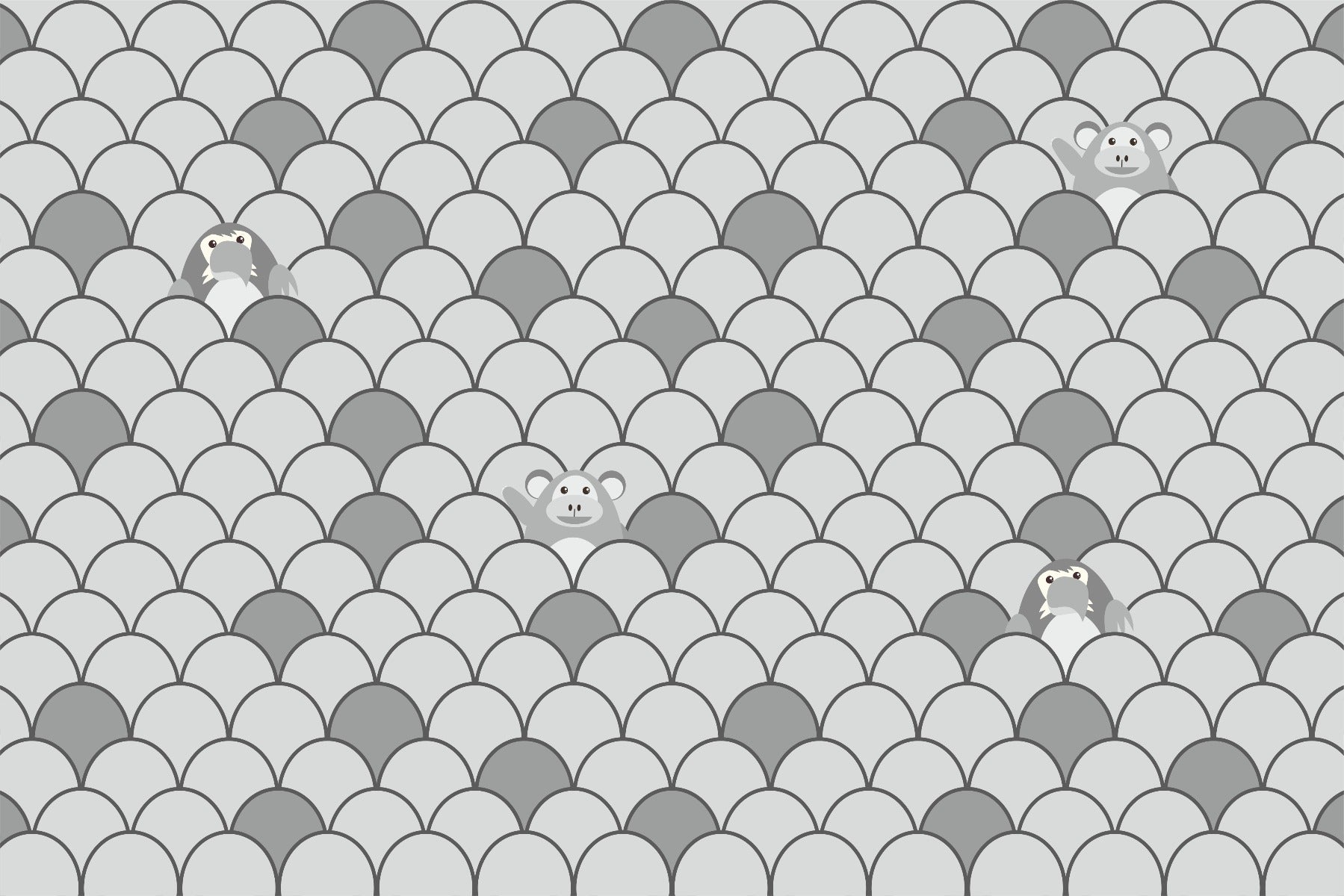 Delight in the whimsical charm of our grey color kids' animated motifs wallpaper mural. Designed to captivate and inspire, this mural features playful animals peeking from behind engaging patterns, creating a scene of wonder and excitement in your child's space. The grey hues blend seamlessly with various decor styles, offering a sophisticated yet fun atmosphere. Watch as your child's imagination takes flight amidst these adorable creatures and intricate designs. The scaly motifs introduce a unique texture, adding depth and interest without overwhelming the room. This kid's room wallpaper mural, with its gentle colors and enchanting patterns, harmonizes perfectly with modern furnishings, making it an ideal choice for a stylish, child-friendly update. This delightful wallpaper mural brings joy and creativity to your child's room.