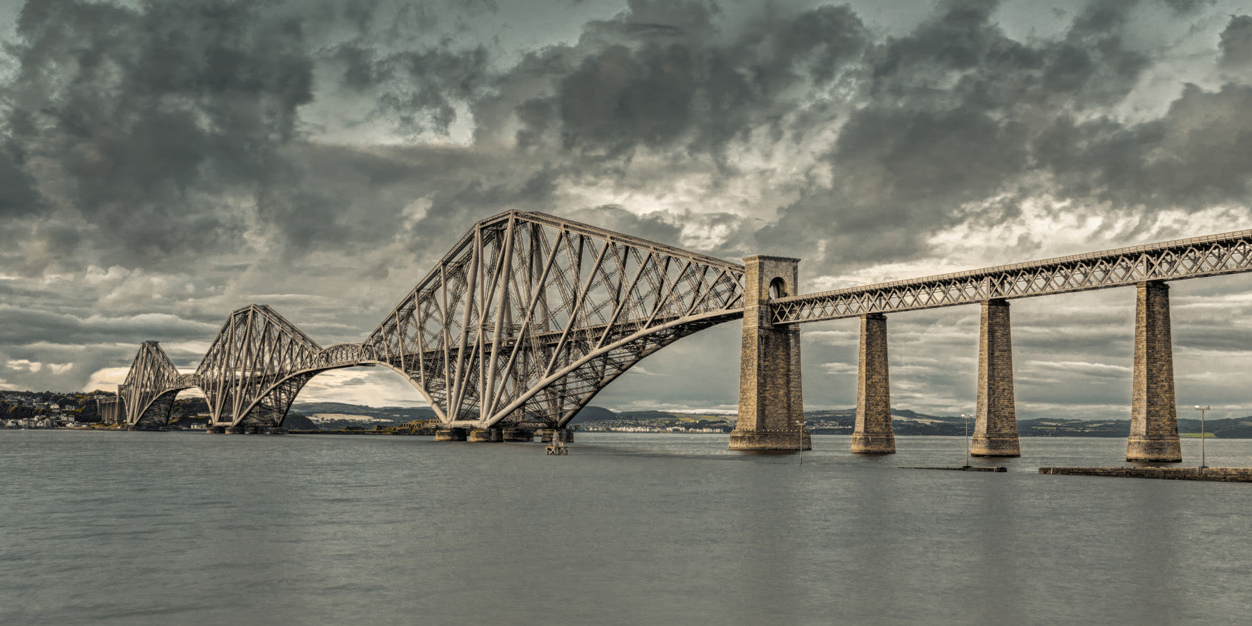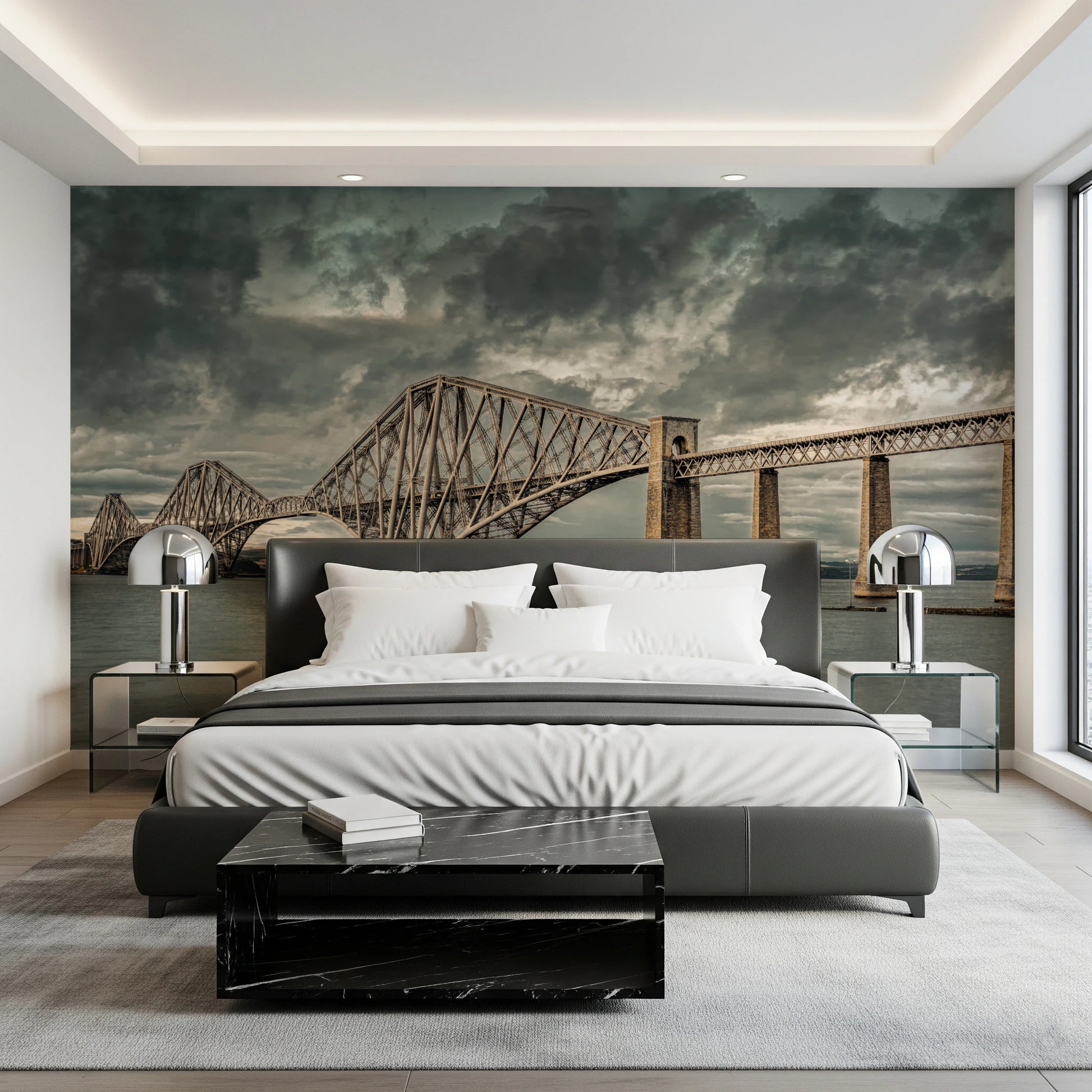 Forth rail bridge, Scotland. Immerse your space in the majestic grandeur of Scotland's iconic Forth Rail Bridge with this stunning wall décor. The intricate latticework of the bridge, a testament to Victorian engineering prowess, is showcased against a dramatic sky, lending a touch of historical significance and architectural beauty to any room. The muted tones and atmospheric light capture the essence of the Scottish landscape, creating a serene and captivating ambiance. Perfect for adding depth and character to your home, this piece transforms your walls into a window overlooking a breathtaking historical landmark. Bring the enduring strength and timeless elegance of the Forth Rail Bridge into your living space, office, or study and let it inspire a sense of awe and wonder.