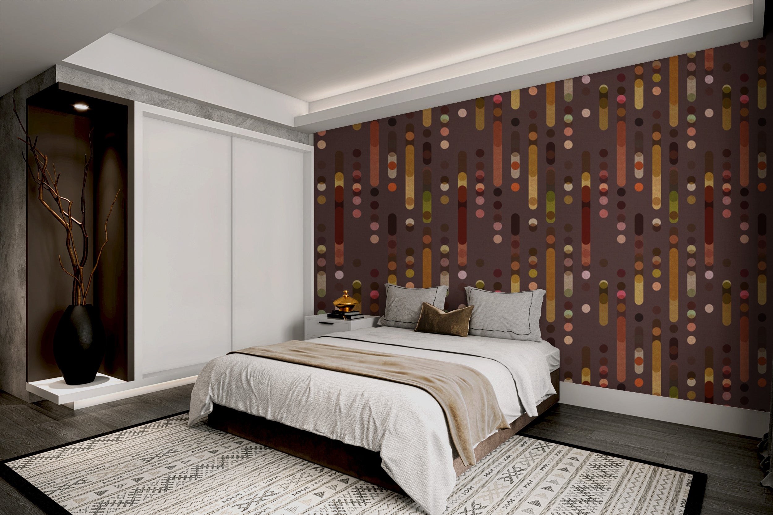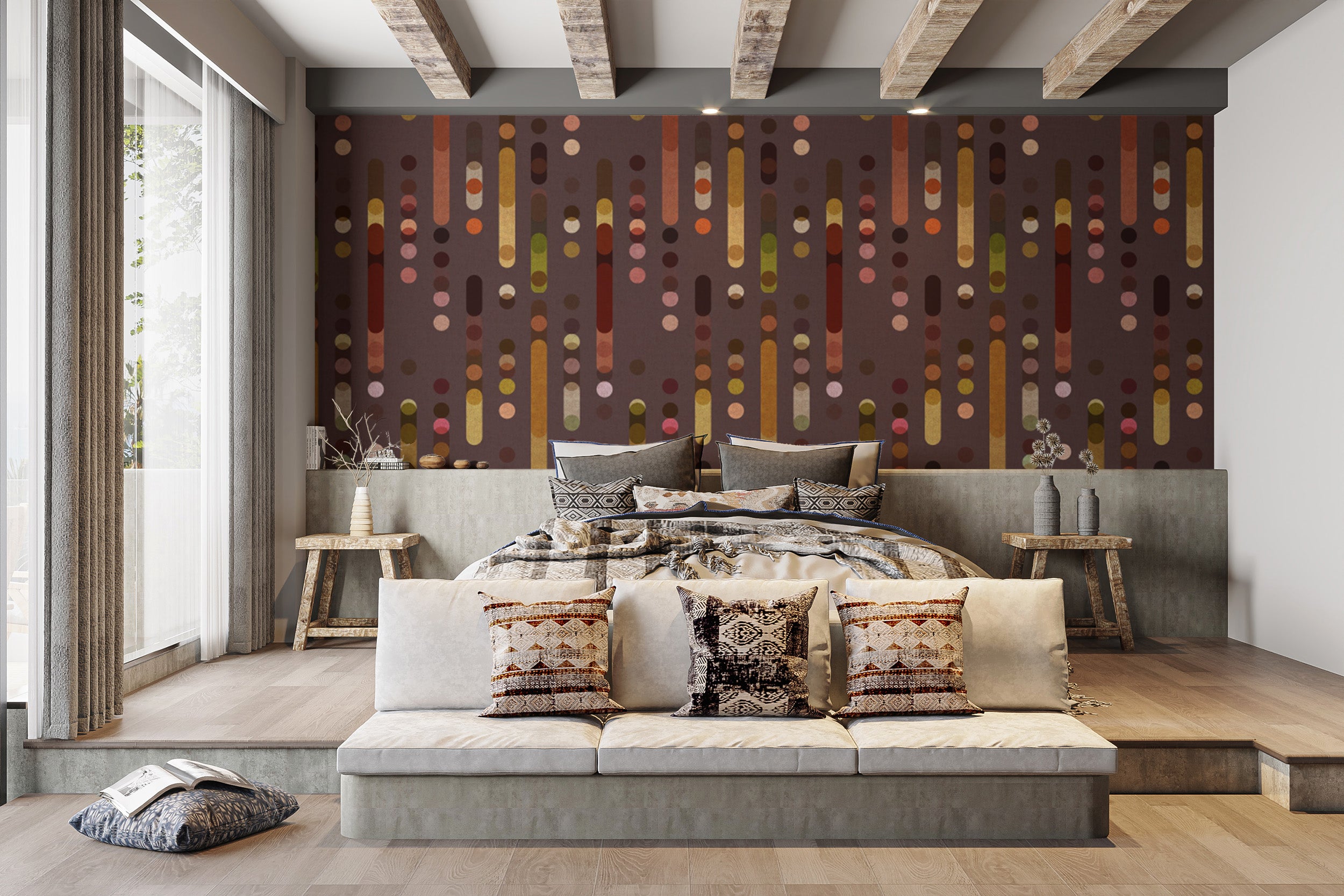 The Hushed Geometry Wallpaper presents a sophisticated array of muted geometrics, merging shades of cocoa, espresso, and caramel that dance across a russet canvas. This brown wallpaper embodies a harmonious blend of linear forms interspersed with circular motifs, creating a serene yet engaging visual feast for the walls of any room. Ideal for those who seek to enliven their environment with a touch of modernity without overwhelming the senses, this wallpaper offers a chic backdrop that complements both contemporary and traditional furnishings. Rich in color and subtle in pattern, it's a choice that promises to infuse your living or working area with a warm, inviting atmosphere.