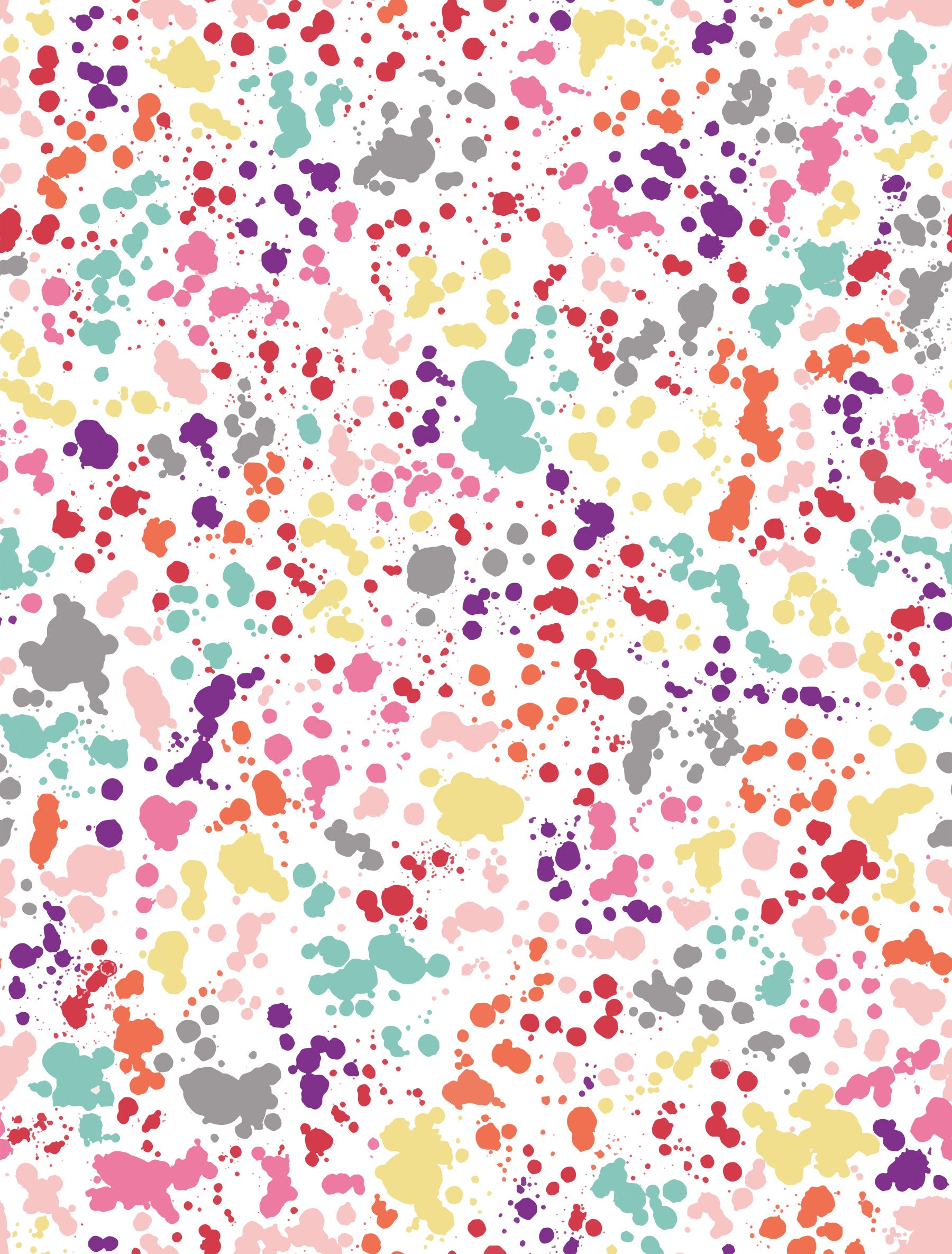 Dive into a vibrant world of color with this captivating wallpaper. A dynamic explosion of multicolored ink splatters and bleeding dots creates a playful and energetic design. The pastel hues of pink, mint, yellow, and coral blend seamlessly with deeper shades of purple and grey, resulting in a visually stunning and balanced aesthetic. This abstract artwork is perfect for adding a touch of modern artistry and whimsical charm to any digital device, bringing a burst of creative energy to your screen. The seamless pattern ensures a consistent and eye-catching backdrop, no matter the screen size.