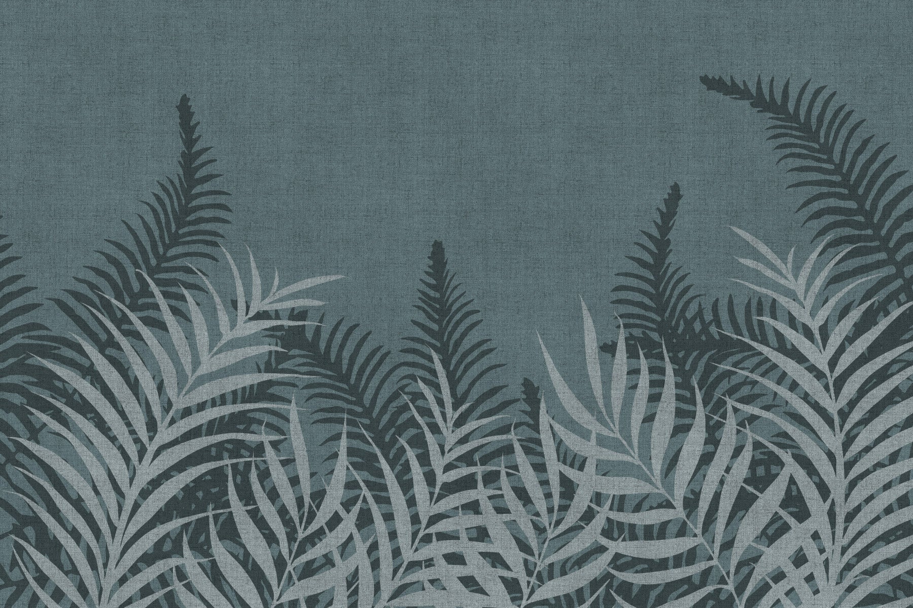 Into The Jungle wallpaper fern silhouette blue textile pattern wall mural.
