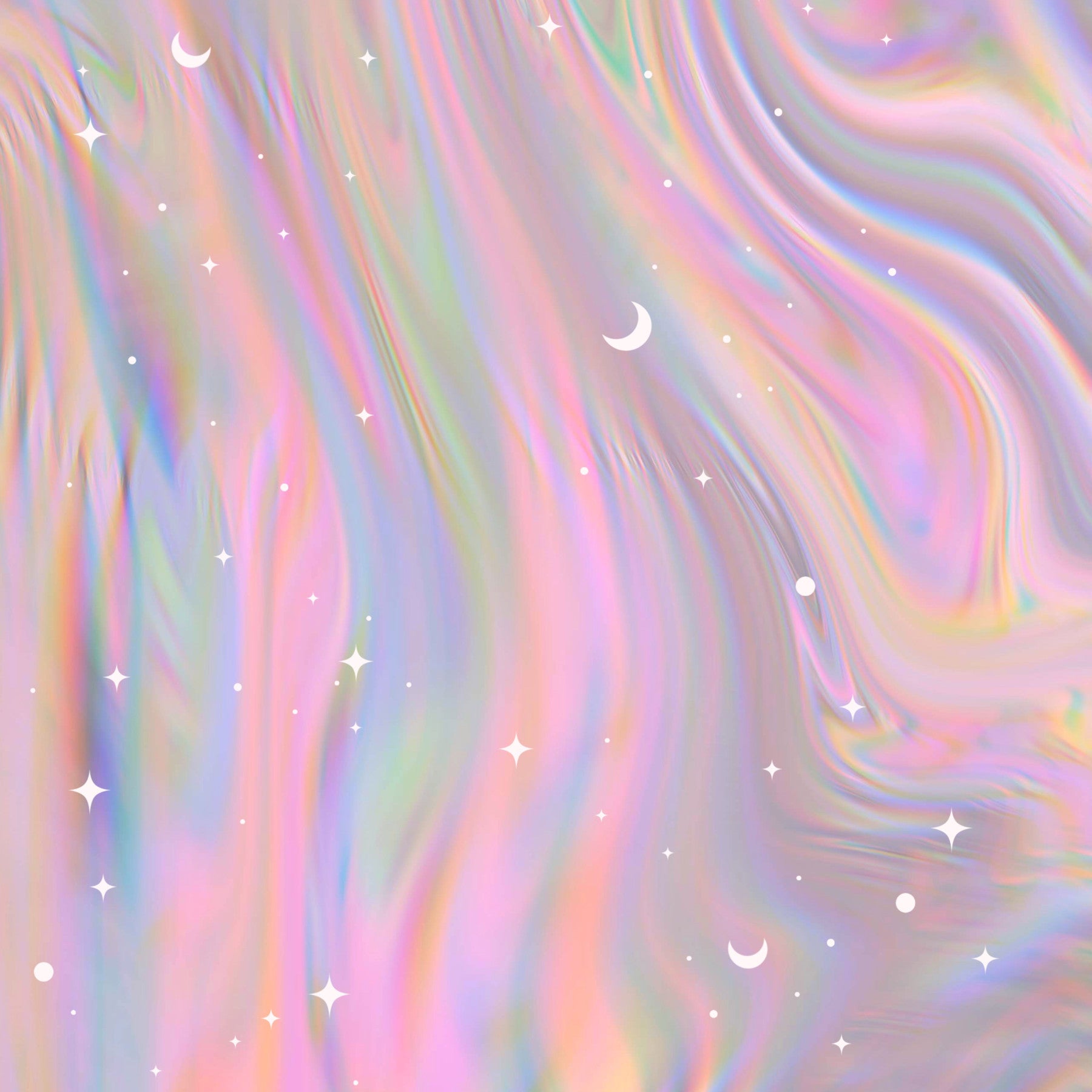 Dive into a dreamlike world with this "Iridescent Motiv" wallpaper. Swirling, pastel hues reminiscent of a celestial aurora dance across the screen, creating a mesmerizing, ethereal effect. Delicate white crescents and stars are scattered throughout, adding a touch of whimsical magic to the iridescent landscape. This dreamy wallpaper evokes feelings of serenity and wonder, perfectly capturing the beauty of shimmering light and celestial dreams. The fluid, abstract design is both captivating and calming, making it an ideal choice for those seeking a visually stunning and peaceful digital backdrop.