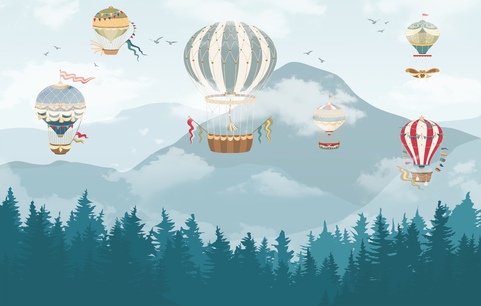 Shop today at our E-store and enjoy the benefits of 100% Quality Assurance and no shipping costs. Making a safe purchase has never been easier. This mural's cheerful design, featuring whimsical hot air balloons, transforms your child’s bedroom or study area into a world of imagination and joy. Don't wait, purchase today and create a magical retreat for your little explorer!