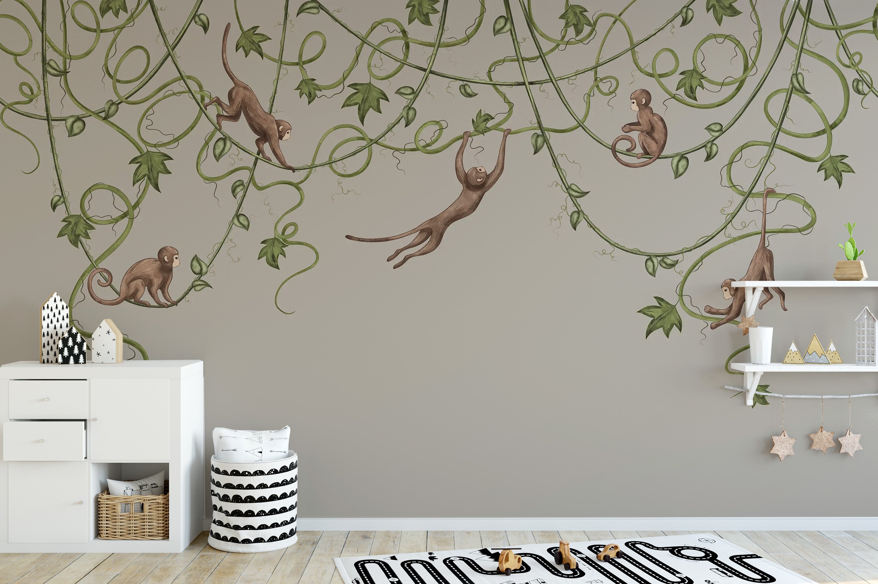 Introduce a playful charm to your child's space with our Joyful Monkey Nursery Wallpaper. Designed with whimsical monkeys swinging on lush green vines, this delightful wallpaper sparks imagination and creates a lively atmosphere in any kids room. Perfect for nurseries, playrooms, or bedrooms, the intricate design adds a touch of adventure and fun. The soothing color palette complements various decor styles while the high-quality material ensures easy application and long-lasting durability. Transform your child's room into a jungle paradise with our joyful monkey nursery wallpaper, providing a cheerful and engaging environment for your little one. Ideal for enhancing creativity and play, this kids room wallpaper is a must-have for any child's space.