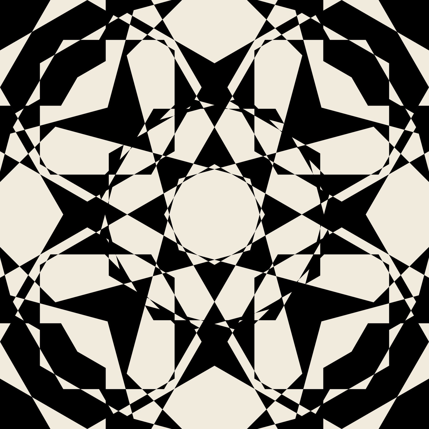 This striking geometric pattern adds a sophisticated touch to any room. Bold black shapes contrast against a creamy backdrop, creating a dynamic visual effect. The symmetrical design draws the eye and adds depth to your space. The monochrome palette ensures it pairs well with existing décor. Install this wallpaper for walls in a living room, hallway, or office to enhance the room's aesthetic. It works exceptionally well in modern, minimalist, and art deco interiors.