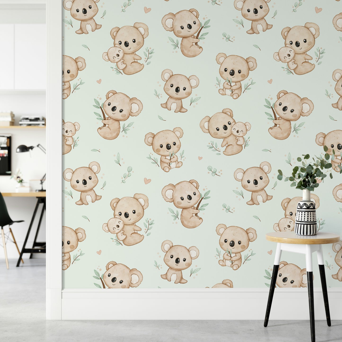 Bring a touch of charm and joy into your home with this delightful wallpaper design featuring adorable koalas. The mint background adds a refreshing and calming vibe, perfect for any room. Ideal for nurseries, bedrooms, or a playful living space, these cuddly koalas bring warmth and character to your walls. Whether you’re creating a fun child’s room or adding a whimsical touch to your decor, this design is sure to inspire smiles and enliven your space with its cute, nature-inspired theme.