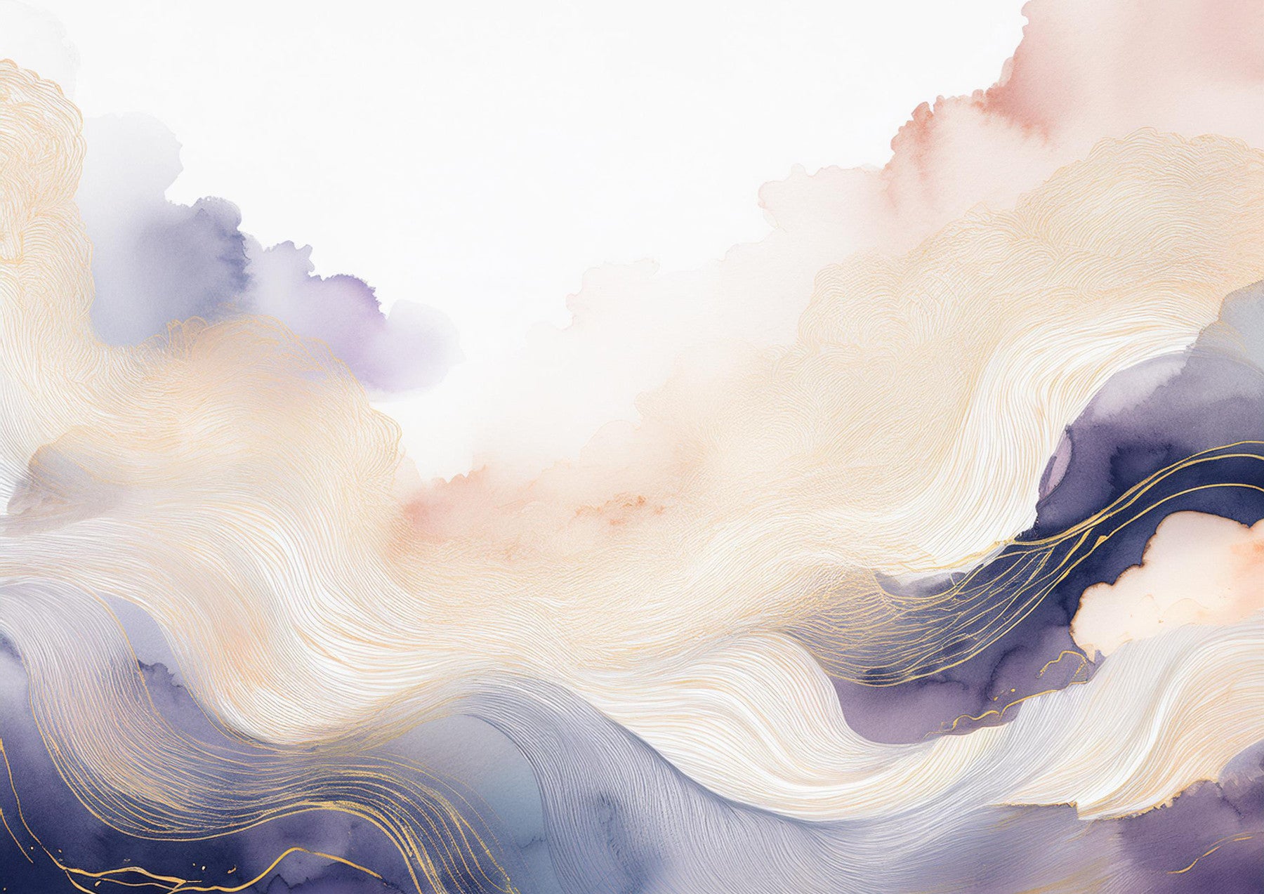 Escape to a world of tranquility with 'Lavender Cloud Forms,' a breathtaking abstract wallpaper that evokes the mystery and beauty of the cosmos. Soft watercolor washes in shades of purple, blush pink, and cream create a dreamy backdrop, while delicate golden lines intertwine to suggest celestial bodies or flowing nebulae. The design is both calming and inspiring, perfect for creating a peaceful and sophisticated space. Its ethereal quality makes it ideal for bedrooms, living rooms, or meditation spaces, adding a touch of celestial magic to your home.