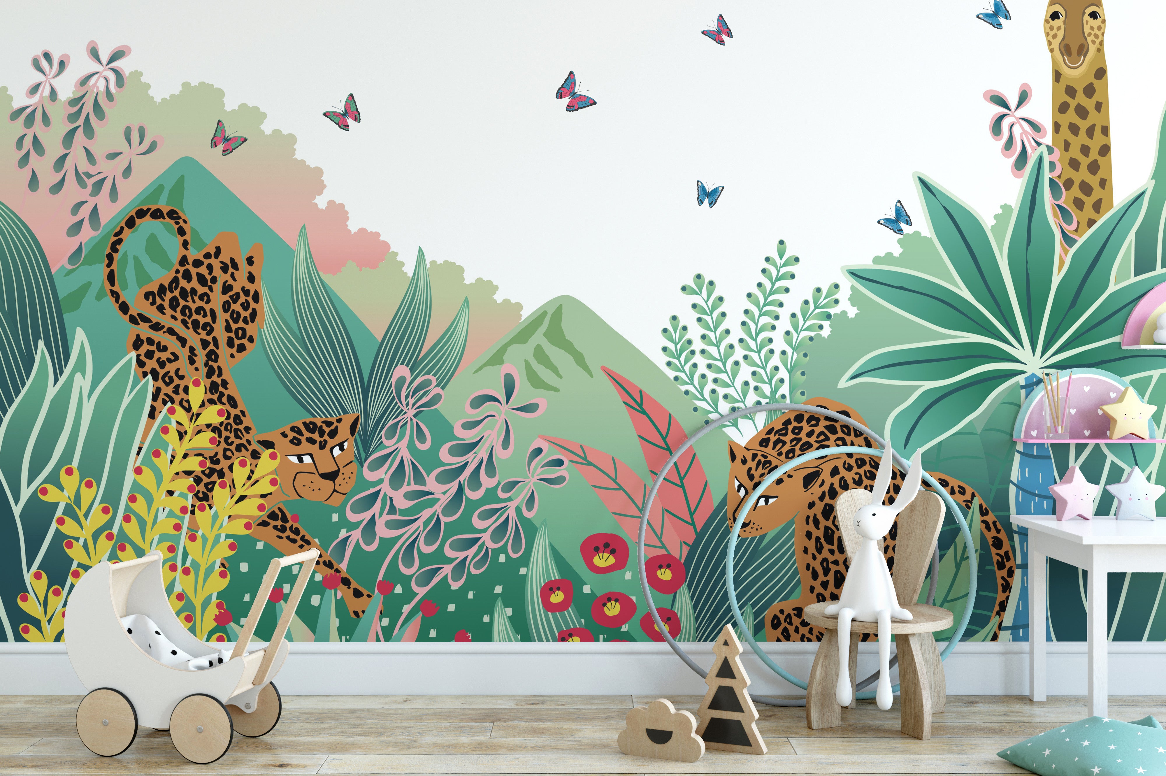 Turn your child’s room into a playful safari adventure with our Leopard and Giraffe Kids Wallpaper Murals. This lively design features friendly leopards and giraffes set against a backdrop of the African savannah, inspiring imagination and a love for wildlife. The warm colors and engaging scenes make it a perfect choice for nurseries, playrooms, or any space where young explorers can dream of adventure. Encourage curiosity about the animal kingdom and bring the excitement of a safari into your home with this enchanting wallpaper.