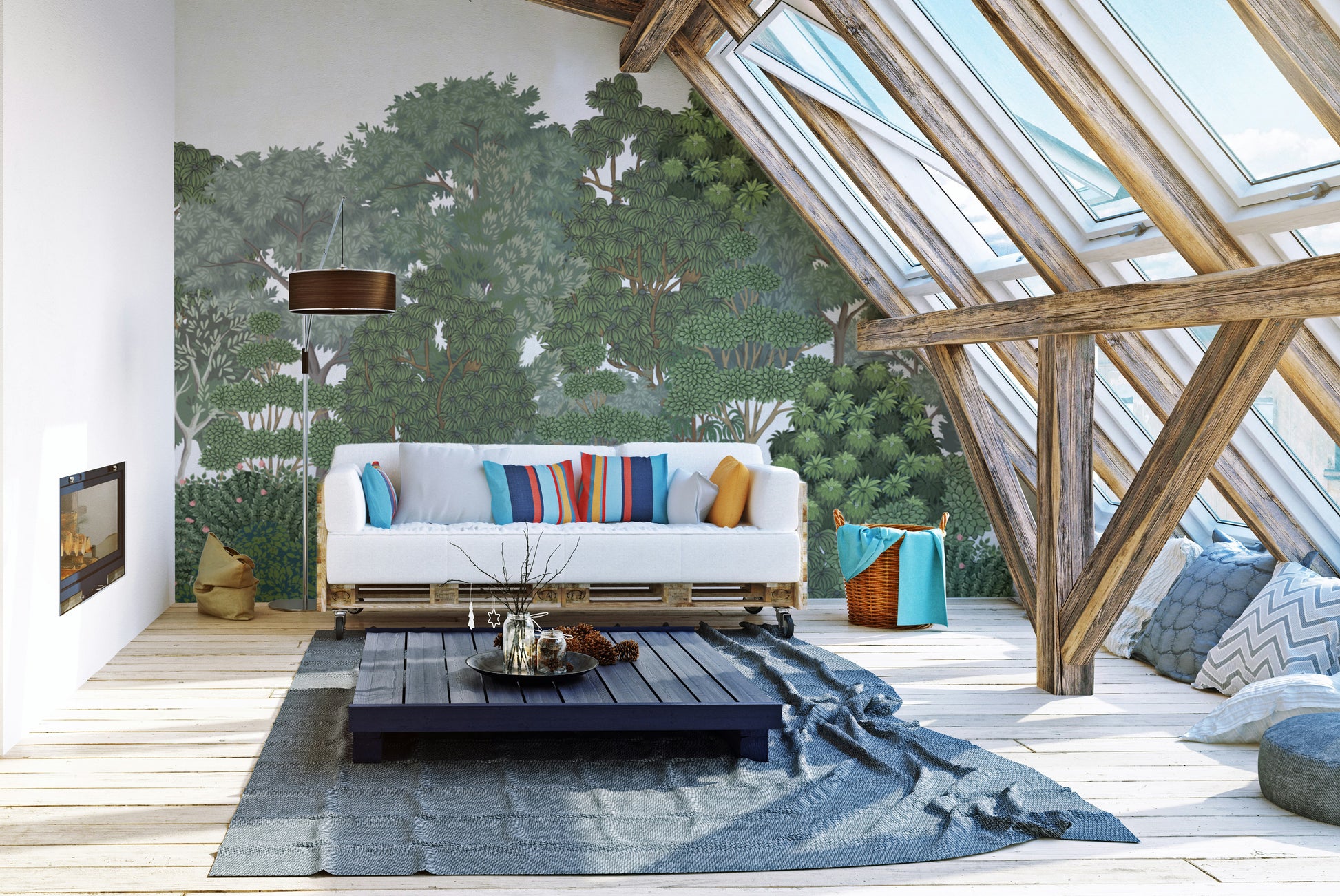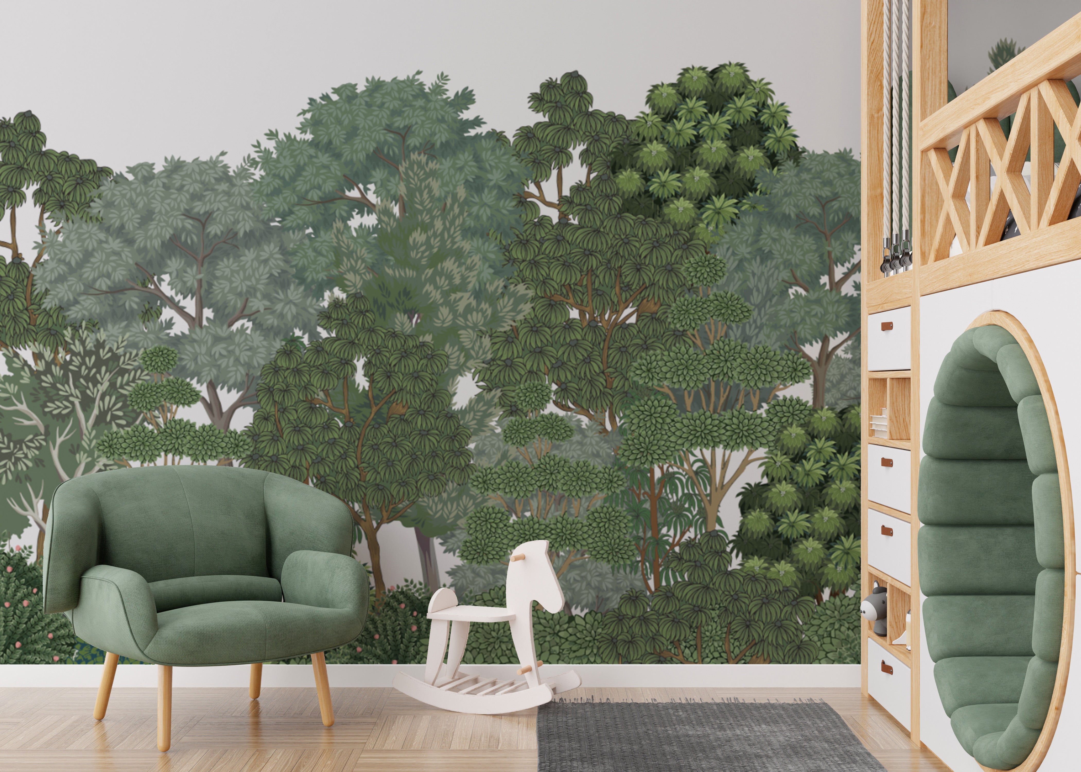 Forest-themed wall mural with lush greenery