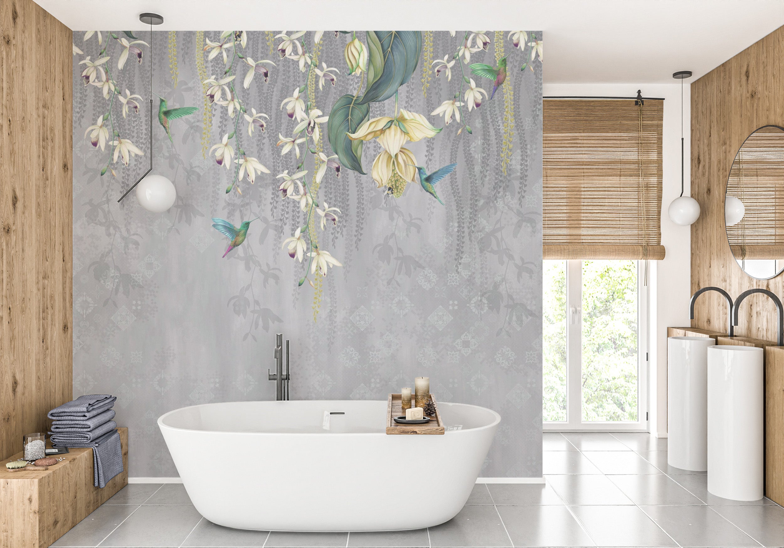 Introduce a touch of nature's elegance into your dining space with the lush orchid drizzle mural wallpaper. Dominated by a beautiful palette of gray, this nature wallpaper adds a sophisticated charm to any dining room. The delicate orchid drizzle design intertwines with the muted gray background, presenting a harmonious blend of contemporary style and timeless floral beauty. Perfect for those looking to make a statement, this flower wallpaper seamlessly combines aesthetics with functionality, offering a delightful backdrop for memorable meals and gatherings. Elevate your interior décor with this gray-colored wallpaper that effortlessly merges the allure of blossoming flowers with modern design.