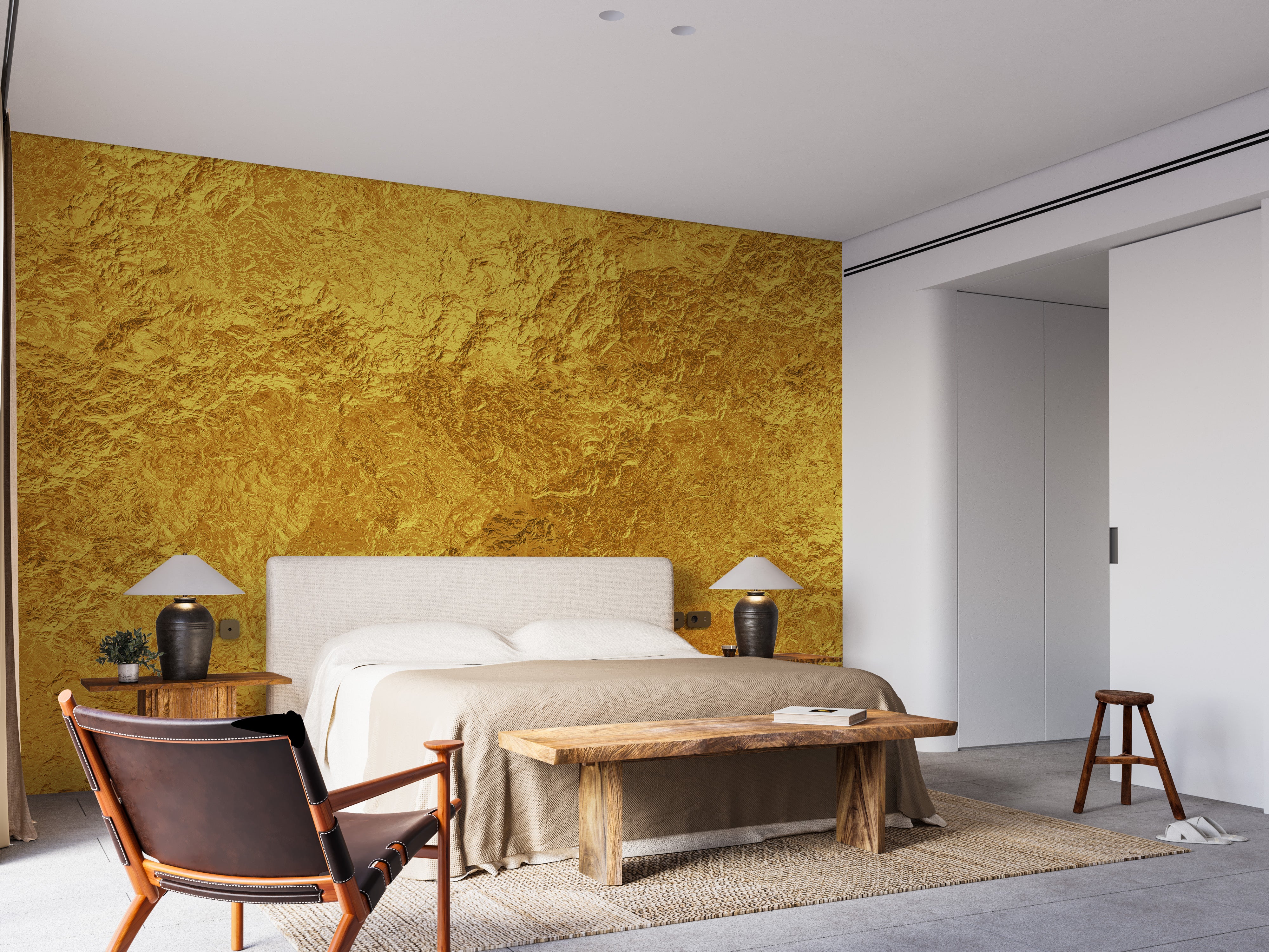 Step into a realm where luxury cascades along the walls with our luxurious golden texture wall mural. As bedroom wallpaper, it is the epitome of lavish living, wrapping your nightly retreat in sheets of gold. Imagine the sun's last kiss goodnight or the first spark of dawn, reflected right in your sanctuary. This mural isn't simply about aesthetics it's a tactile experience, a gentle embrace of splendour every time your gaze drifts across the room. With each morning awakening or evening's repose, feel the subtle grandeur that this golden mural brings to your personal space.
