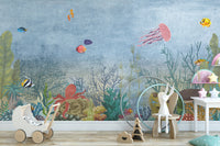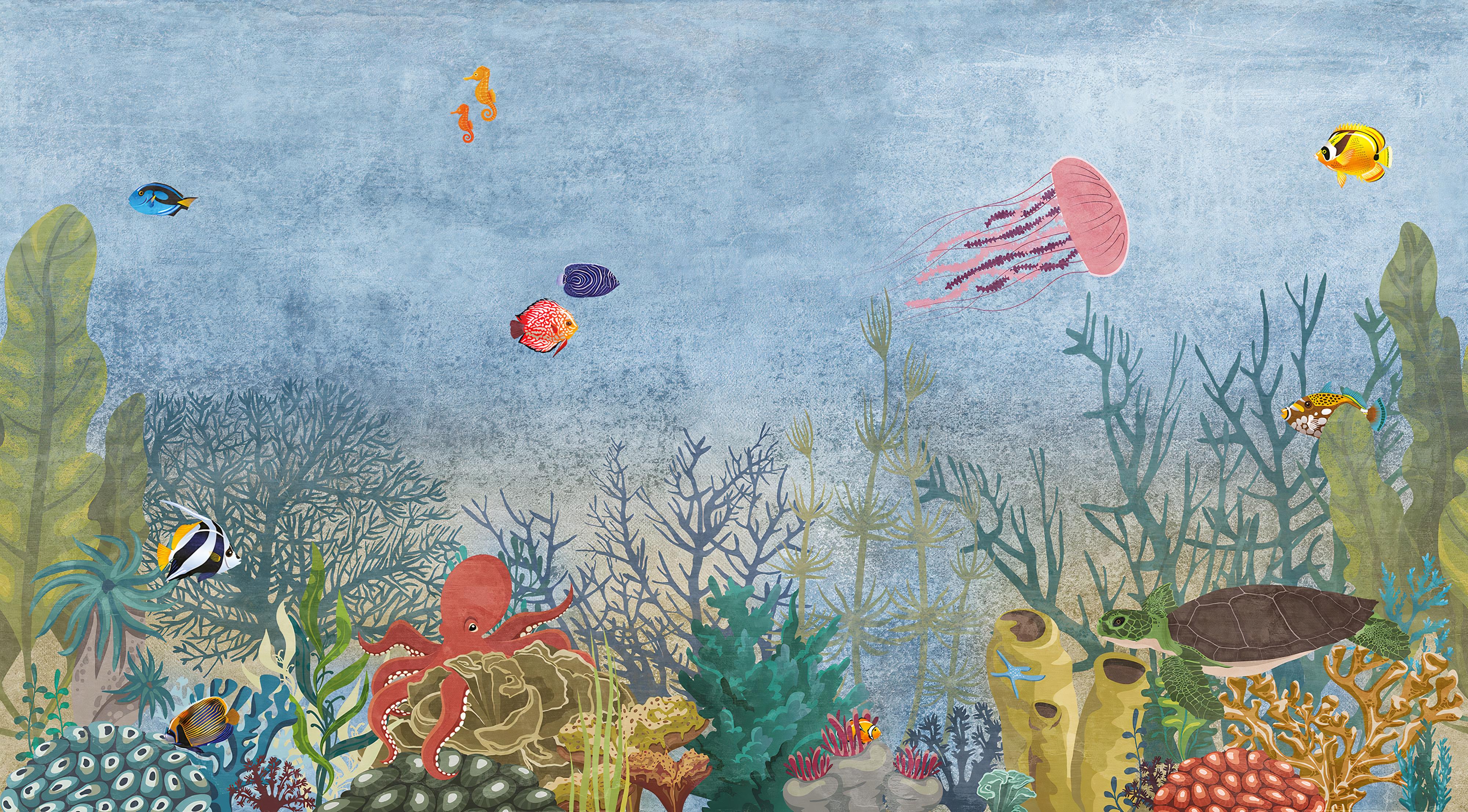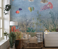 Bring a breathtaking ocean scene into your home with the Marine Life Underwater Wallpaper Mural for walls. Featuring bright fish, an adorable octopus, and a tranquil turtle swimming in a kaleidoscope of corals, this mural is a wonderful representation of an oceanic atmosphere. Be a lover of marine life or an admirer of nature's beauty—this mural will breathe life into your living room or bedroom. Shop now and enjoy the soothing effect of ocean views in your home with free shipping!