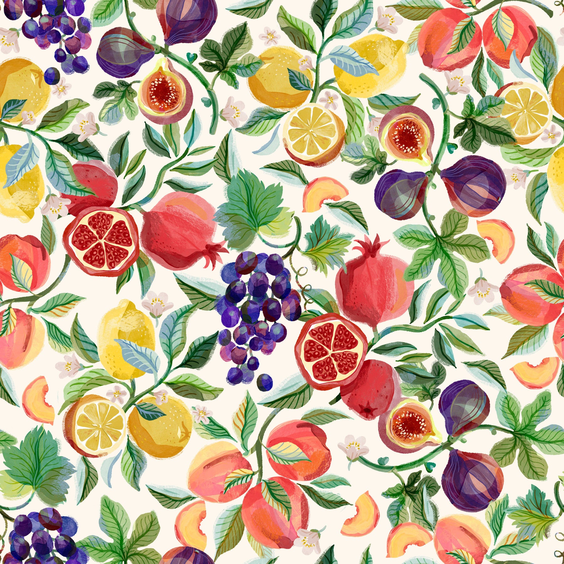 Fresh Mediterranean fruit wallpaper with vibrant colors