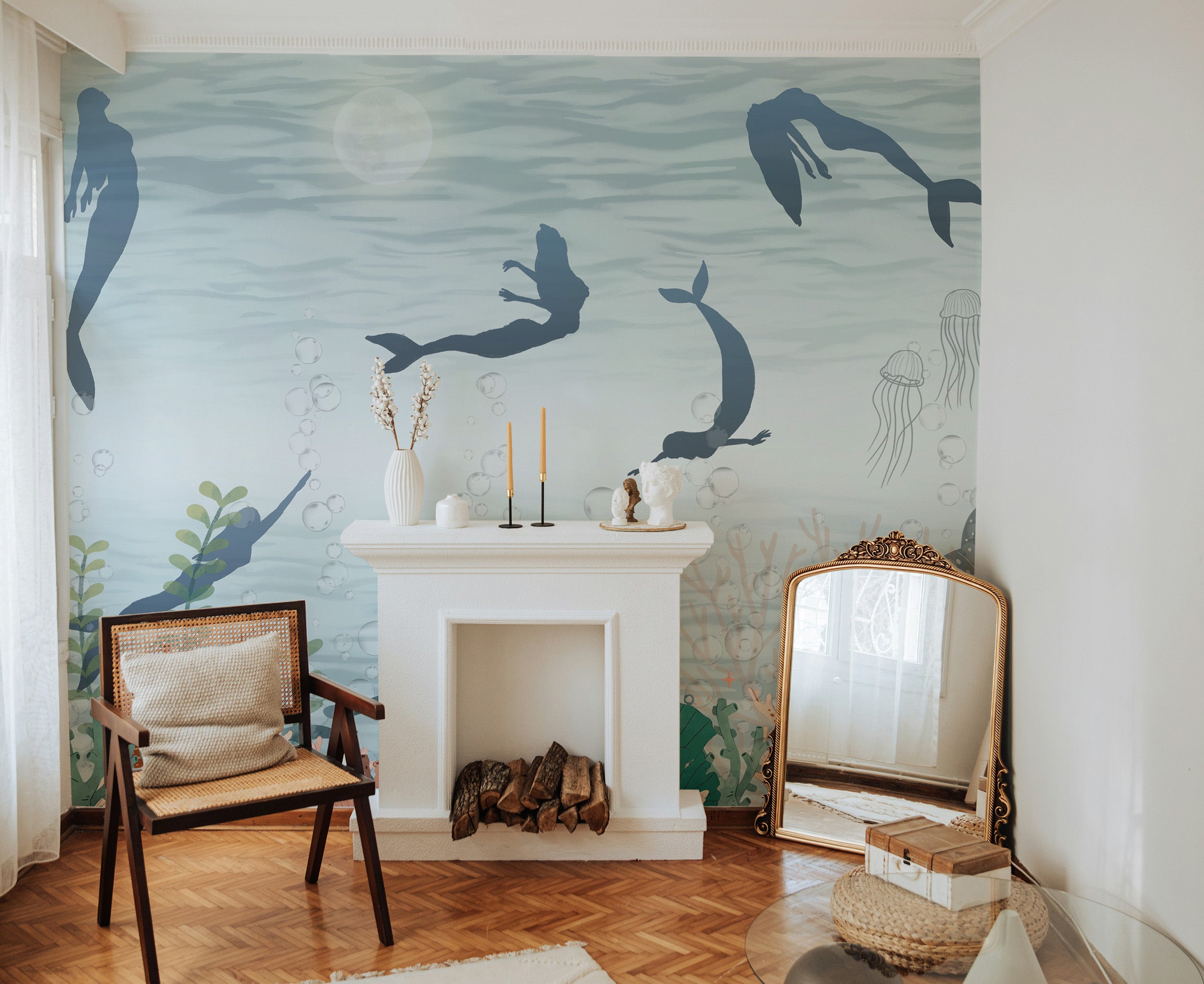 Mermaid Whispers Ocean Mural peel and stick wallpaper