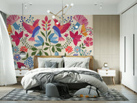 Invite the vibrant spirit of Mexico into your space with this captivating wall décor. "Mexican Garden" bursts with the warmth and cheer of a sun-drenched hacienda, rendered in a stylized, folk-art aesthetic. Symmetrical arrangements of stylized flora in a kaleidoscope of color – deep reds, tranquil blues, and sunny yellows – bloom against a soft, neutral backdrop. Flitting butterflies and stylized birds with crimson wings add a touch of whimsy and movement. This design evokes the artistry of traditional Mexican textiles. This piece is ideal for adding a touch of joyful elegance to any room, transforming your walls into a canvas that celebrates the beauty and culture of Mexico. Transform your space into a vibrant and inviting sanctuary, echoing the rich traditions of Mexican art.