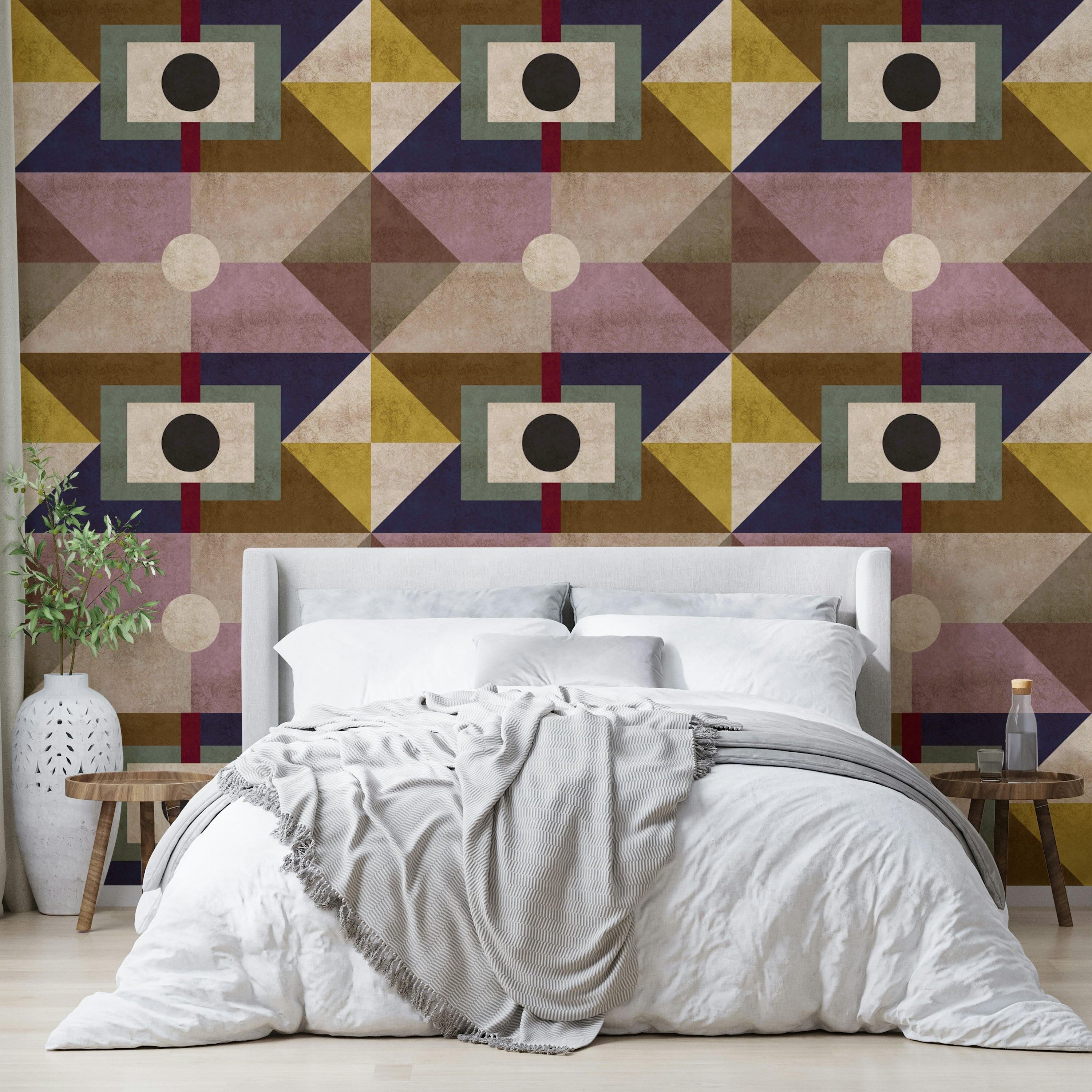 Vintage-inspired wallpaper with classic geometry