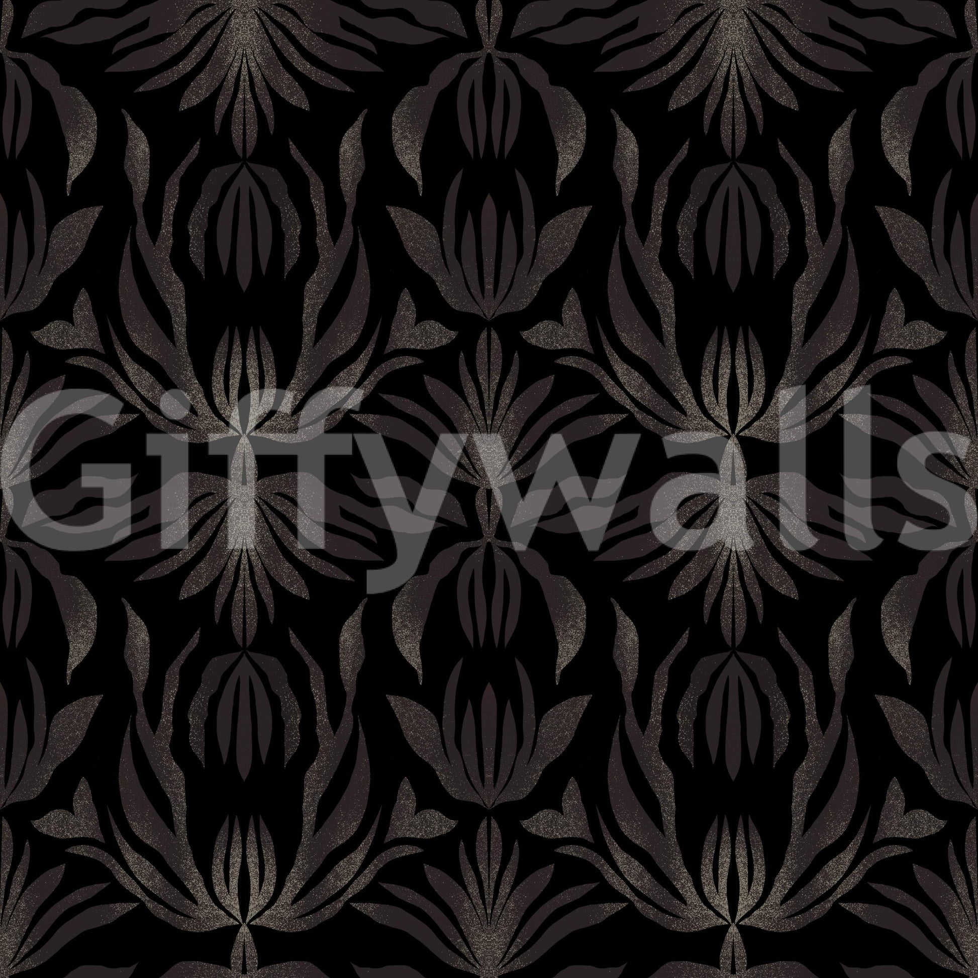 Midnight Bloom Damask art deco style abstract palm leaves Wallpaper⁠