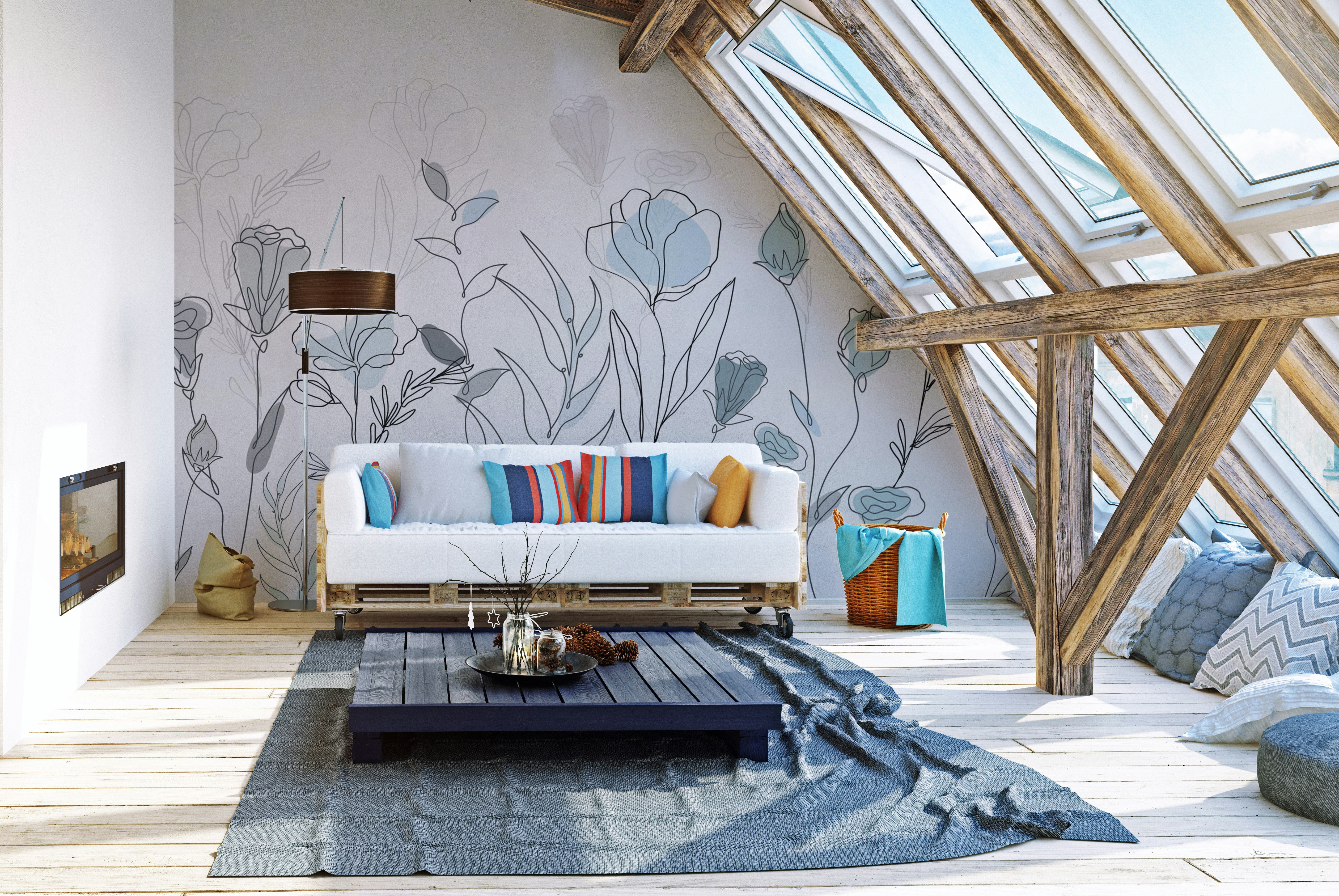 Hand-drawn flower wallpaper for modern interiors