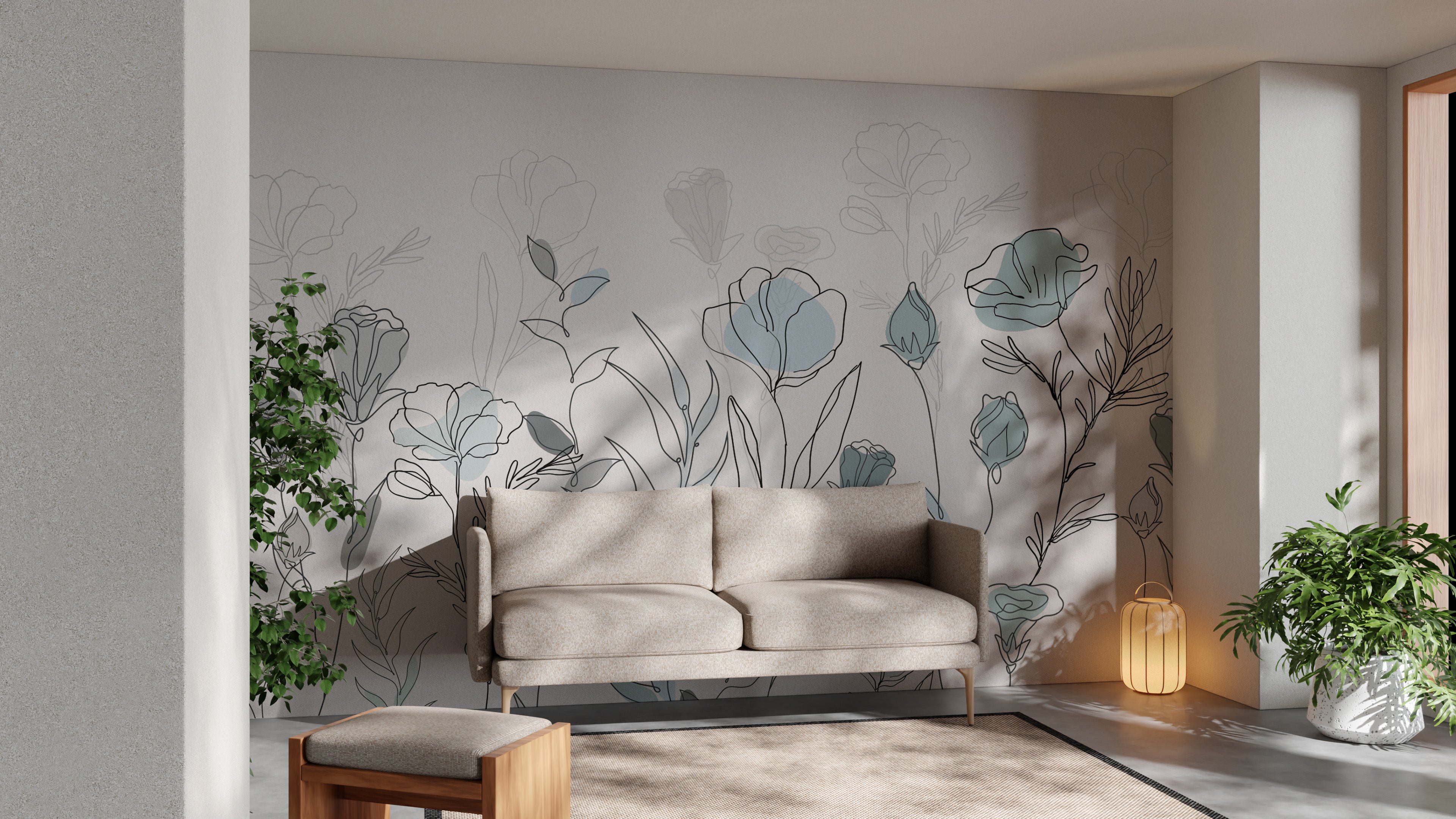Subtle floral line art wallpaper for serene walls
