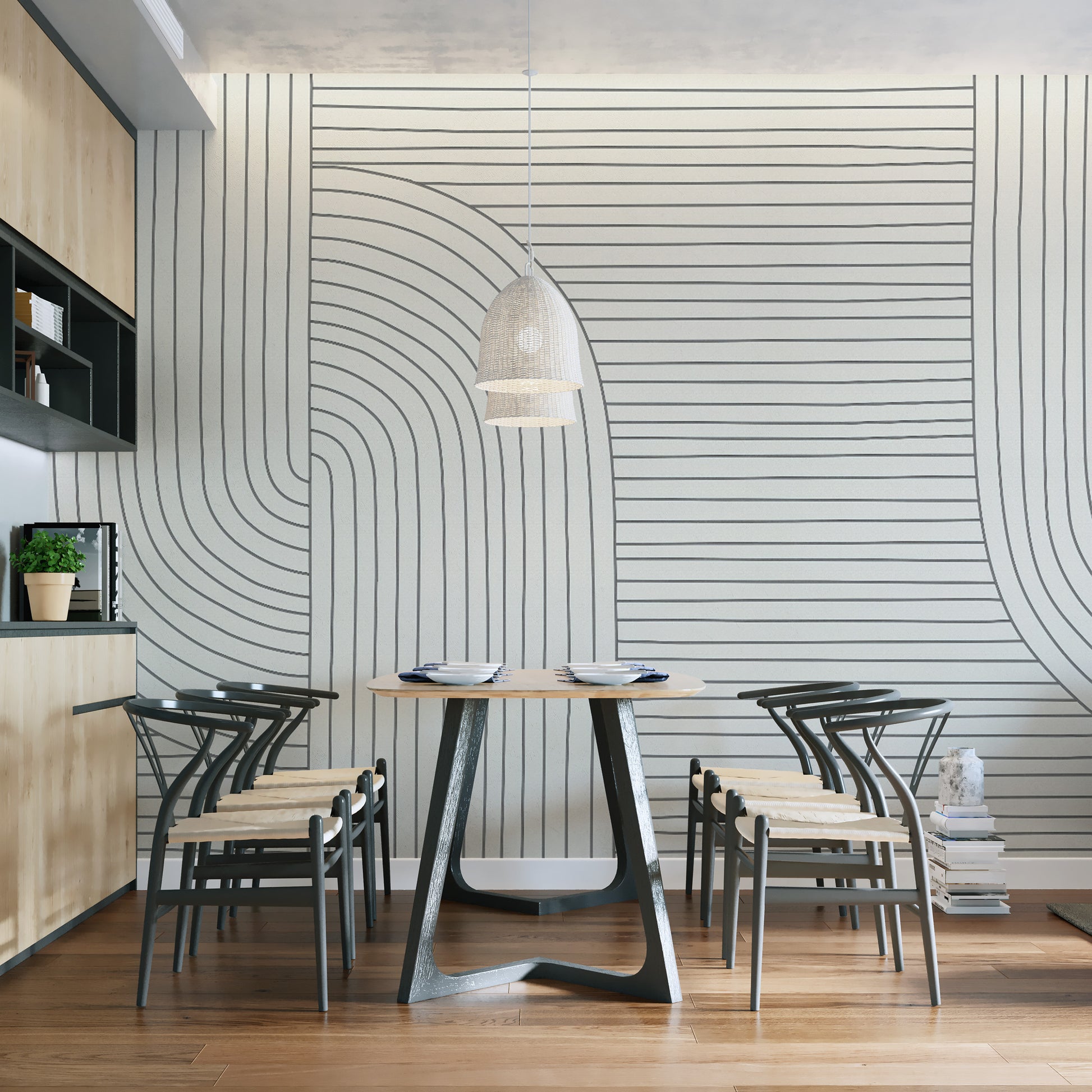 Upgrade your space with the minimalist geometric line wallpaper, a sleek combination of classic and clean simplicity. With its sophisticated, minimalist, simple line patterns and neutral color scheme, this design lends elegance to any space. Ideally suited to Scandinavian schemes, contemporary living, and art deco schemes, its understated sophistication adds grace to walls without dominating the whole room. Black and white geometric wallpaper is timeless and suitable for living rooms, bedrooms, and offices. Made for application convenience, this fashionable wallpaper is robust, chic, and, therefore, promising from a design point of view. Update your interiors with this stylish, contemporary pattern wallpaper now!