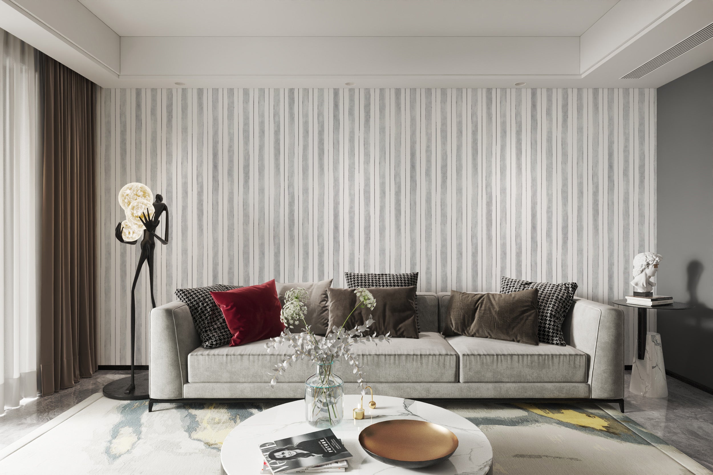 Grey Striped Wallpaper for Living Room