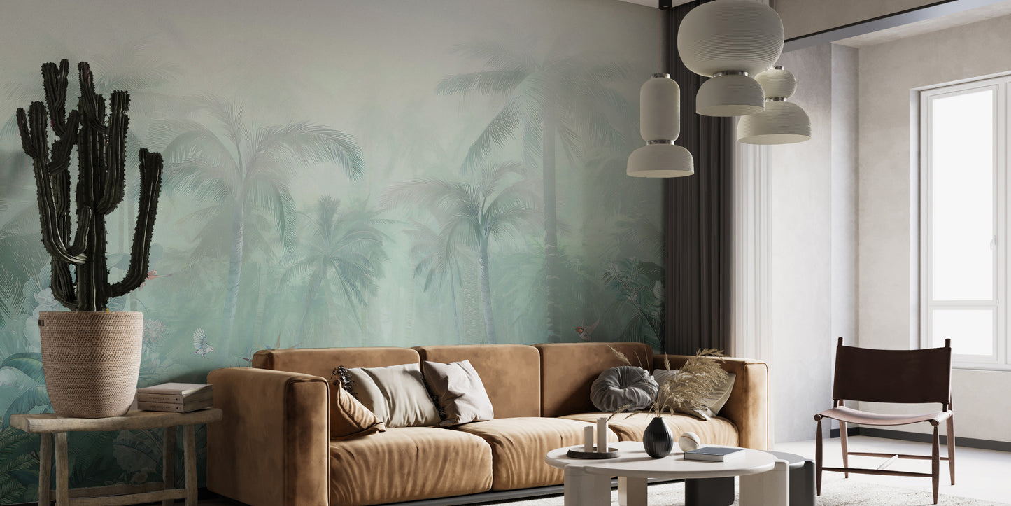 Our mint green colored forest view mural wallpaper are not just wall coverings; they're gateways to peaceful indoor gardens where the beauty of the outdoors flourishes all year round. Choose our minty green wallpaper and bring the essence of a foggy forest sanctuary right into your home.