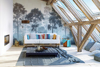 Create a peaceful atmosphere with the misty blue forest mural. Soft blue and gray tones blend with a foggy tree landscape, adding depth and serenity. This design enhances bedrooms, living rooms, and offices with a calming outdoor feel. The detailed tree patterns bring nature indoors, offering a refreshing escape. High-quality materials ensure durability and a smooth finish. The foggy forest wallpaper suits modern and classic interiors alike. Enjoy the beauty of the serene woodland wallpaper, bringing a soothing natural touch to any setting. Choose this scenic nature wallpaper for a timeless and relaxing backdrop.