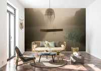 This stunning wallpaper creates a calm, serene mood with its soft, muted tones. A wooden dock with a blue ladder sits in a mist-covered lake, inviting you to relax. The design offers a peaceful escape, making it great for bedrooms, living rooms, or offices. This wallpaper for walls enhances interior spaces by adding a touch of nature's stillness and quiet beauty. It blends well with minimalist or Scandinavian décor.