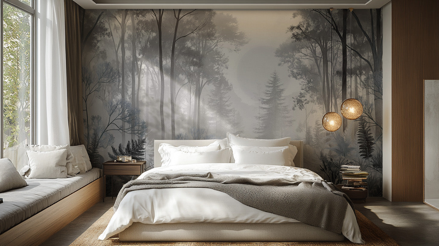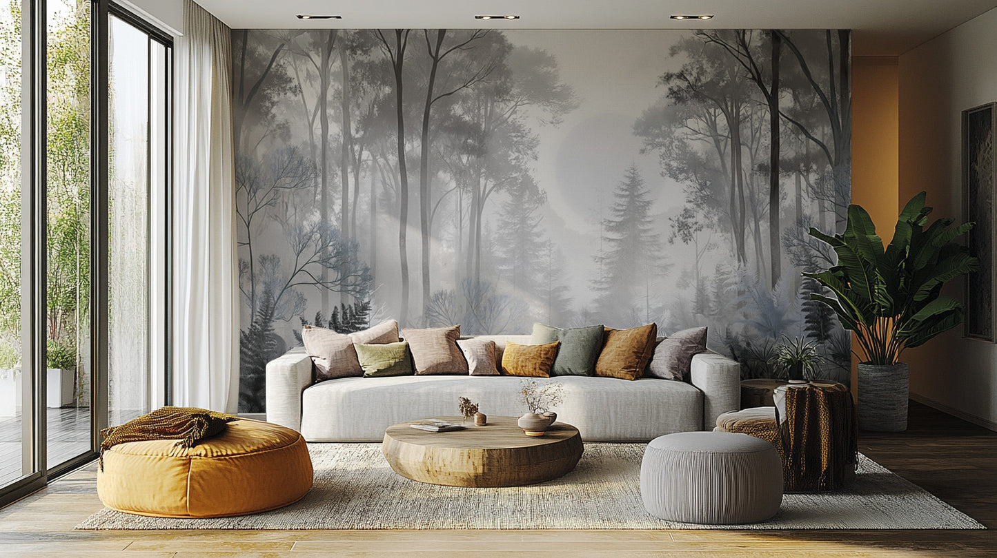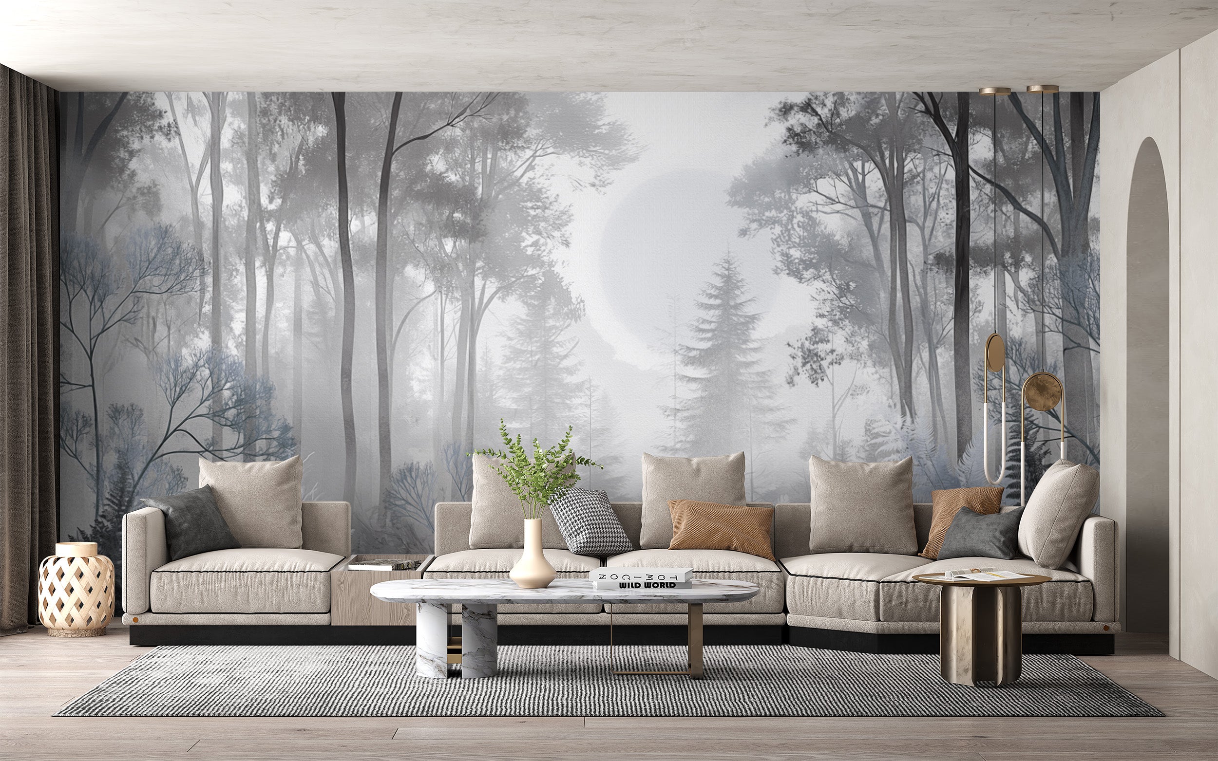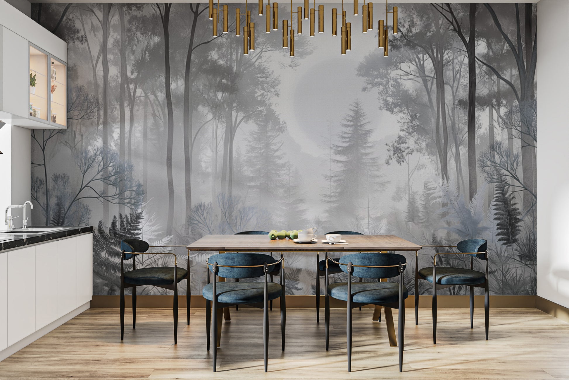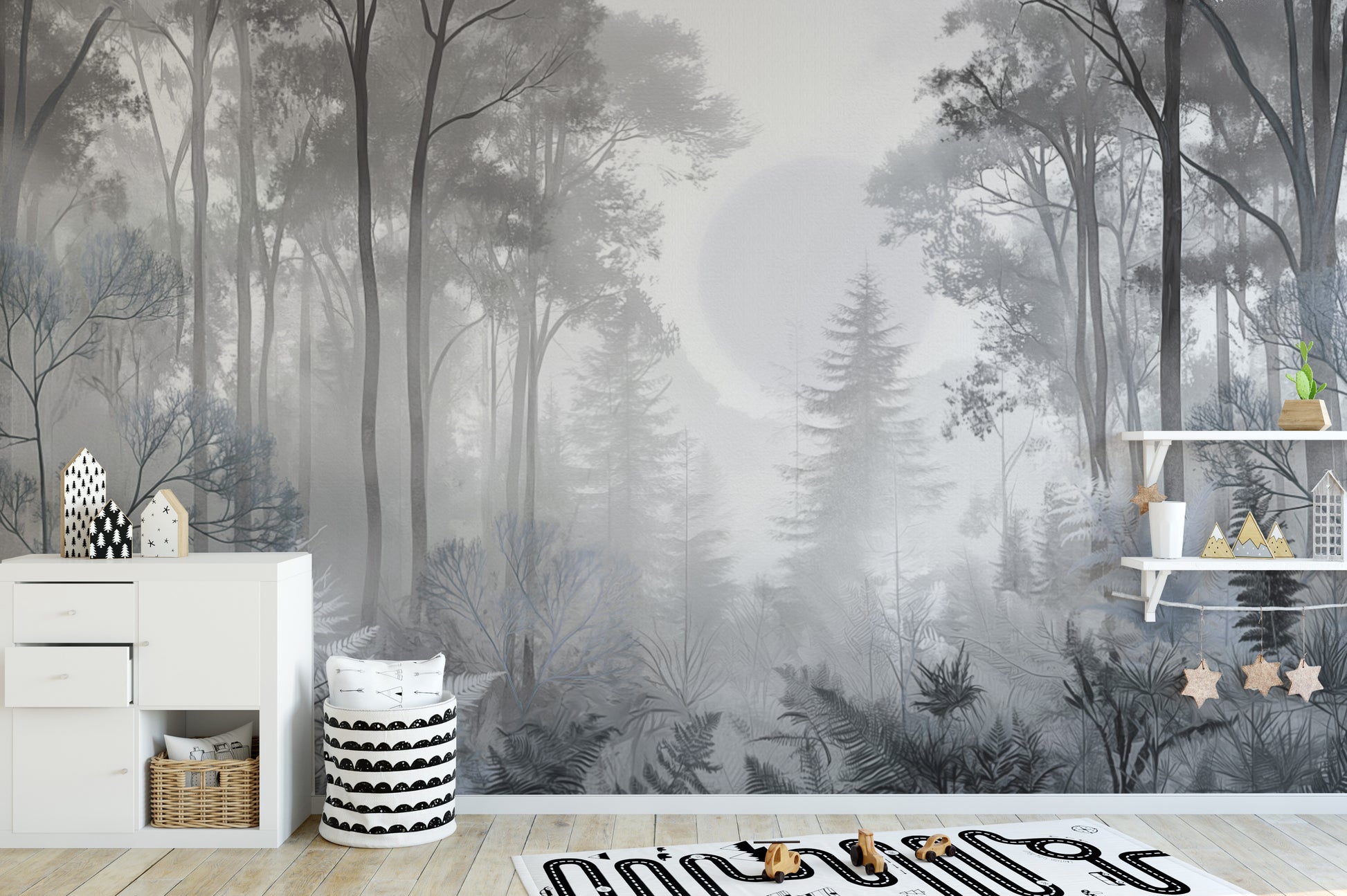 Bring the beauty of nature indoors with the Misty Monochrome Forest Wallpaper Mural. This foggy wood wallpaper creates a serene atmosphere with delicate mist weaving through tall trees and dense foliage. The black-and-white nature mural enhances any space with a timeless and sophisticated look. Designed for modern interiors, this monochrome forest mural adds depth and character to walls, making rooms feel calm and inviting. The high-quality print captures every detail, from the soft light filtering through the trees to the intricate ferns. Perfect for bedrooms, living areas, and offices, this elegant tree silhouette mural brings nature's charm inside.