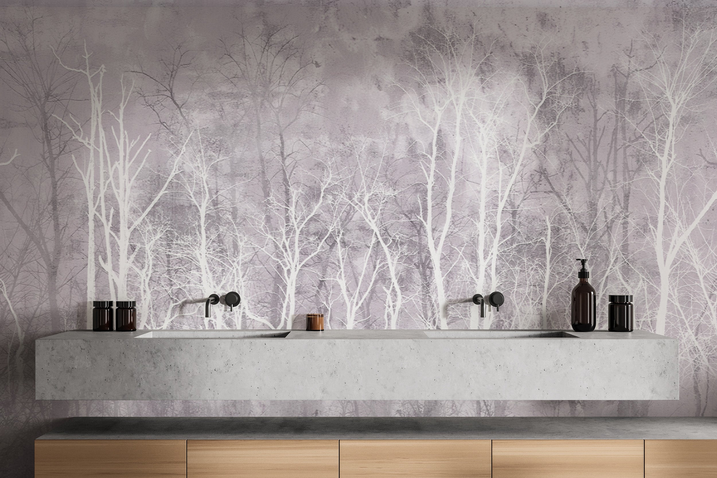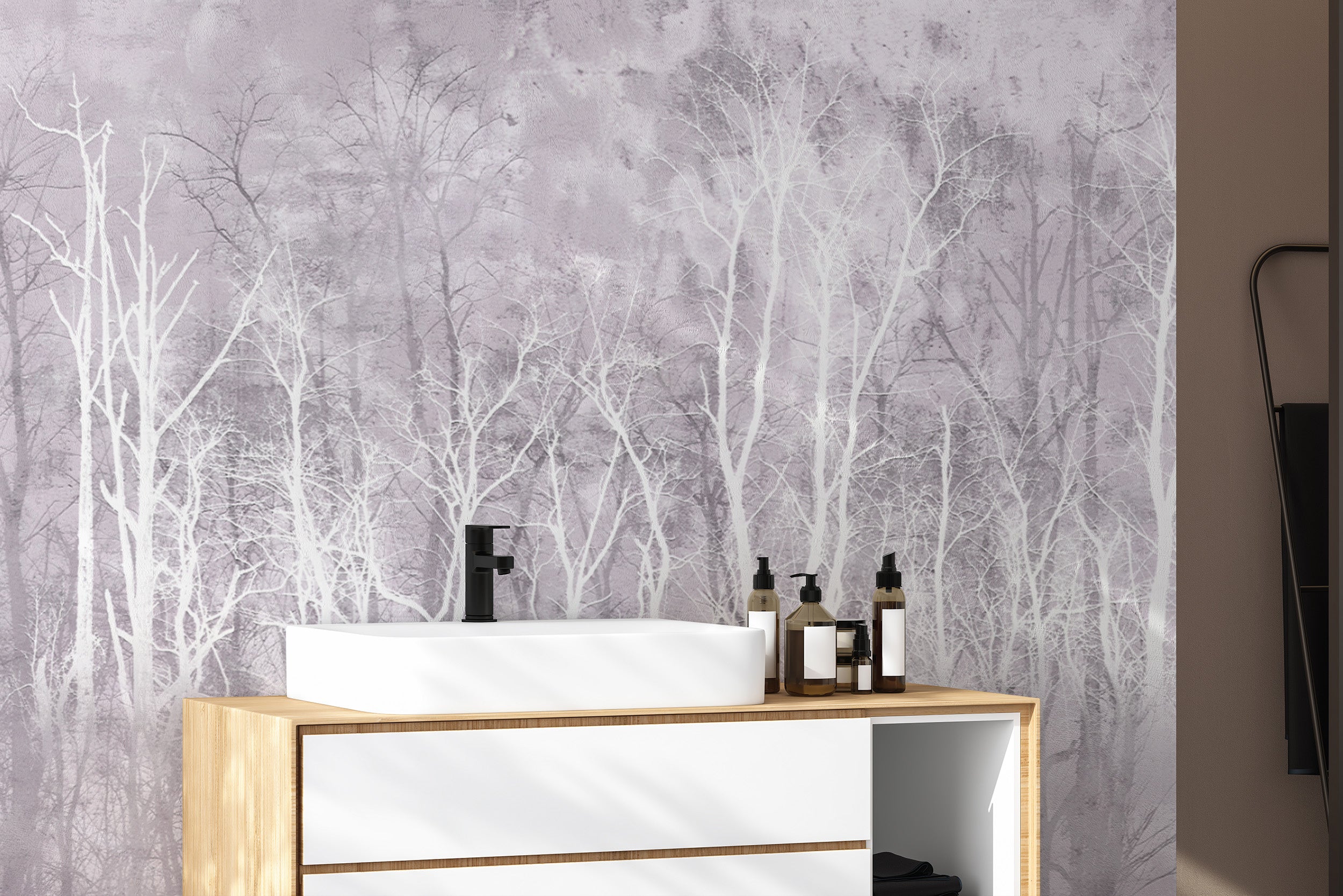 Monochrome trees wall mural for a calming nature-inspired look