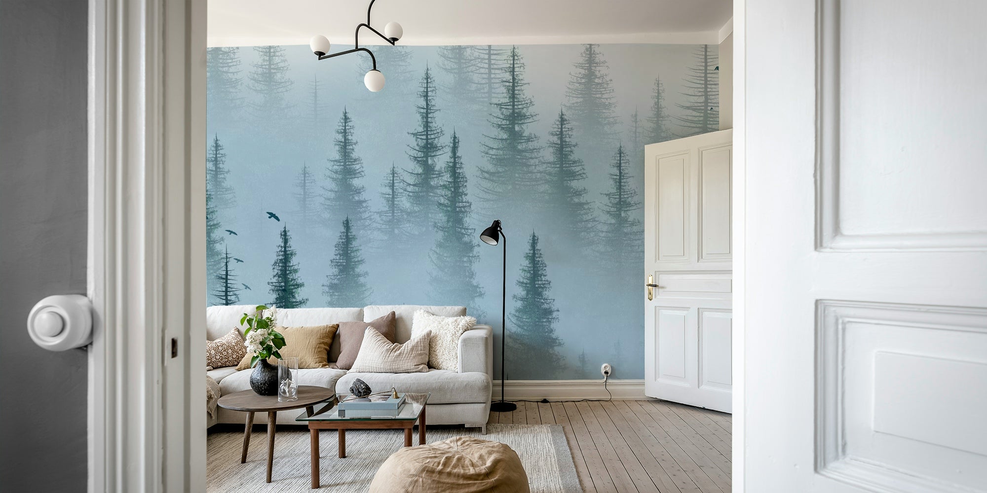 Dreamy misty woods wallpaper for living room