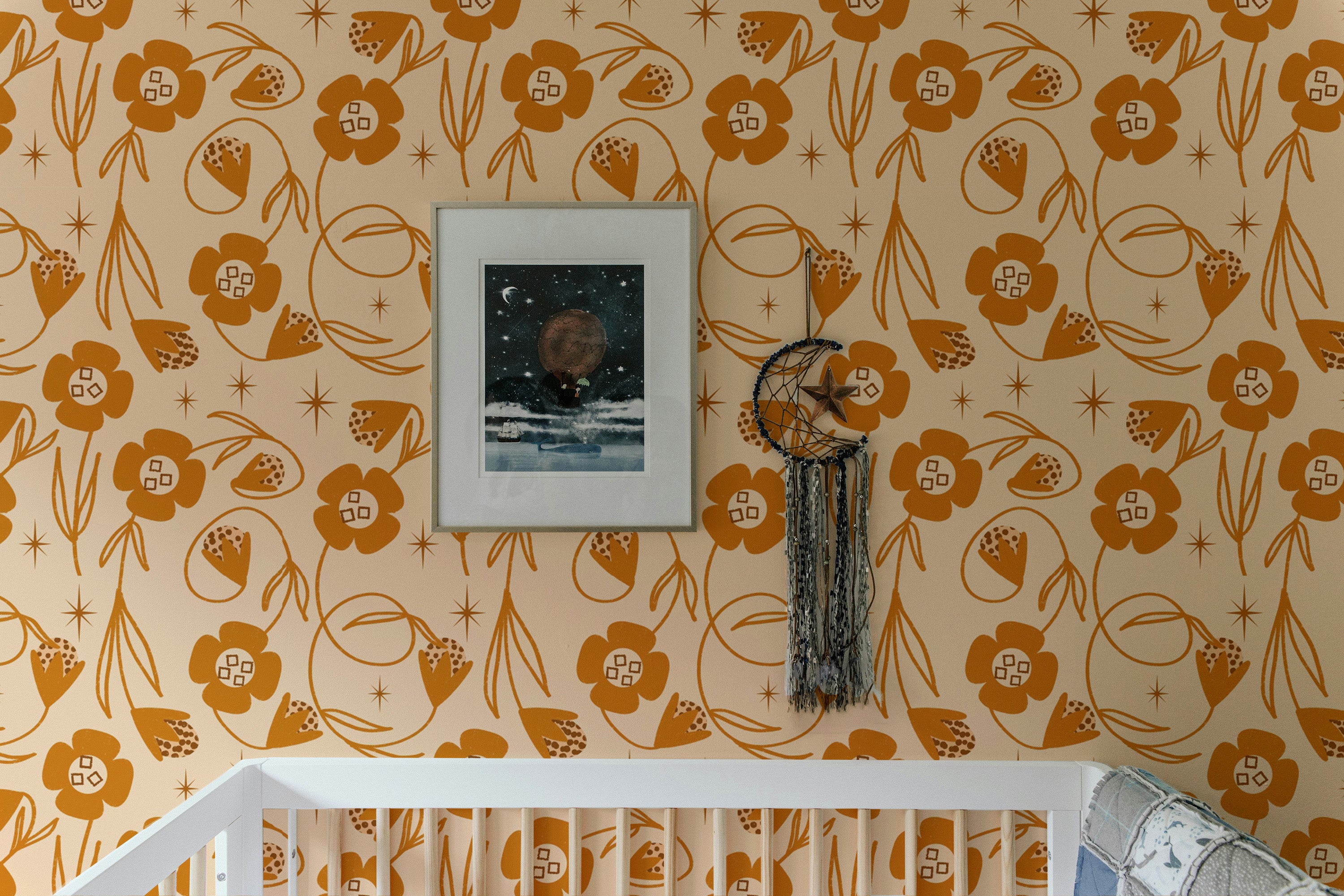 Make a bold statement in your space with the Suitable for Every Room: Modern Floral Vines Orange Peach Wallpaper. Our wall mural features a pattern that is both modern and timeless. Printed on high-quality eco-friendly materials, Modern Floral Vines Orange Peach Wallpaper is the perfect choice for any Suitable for Every Room.