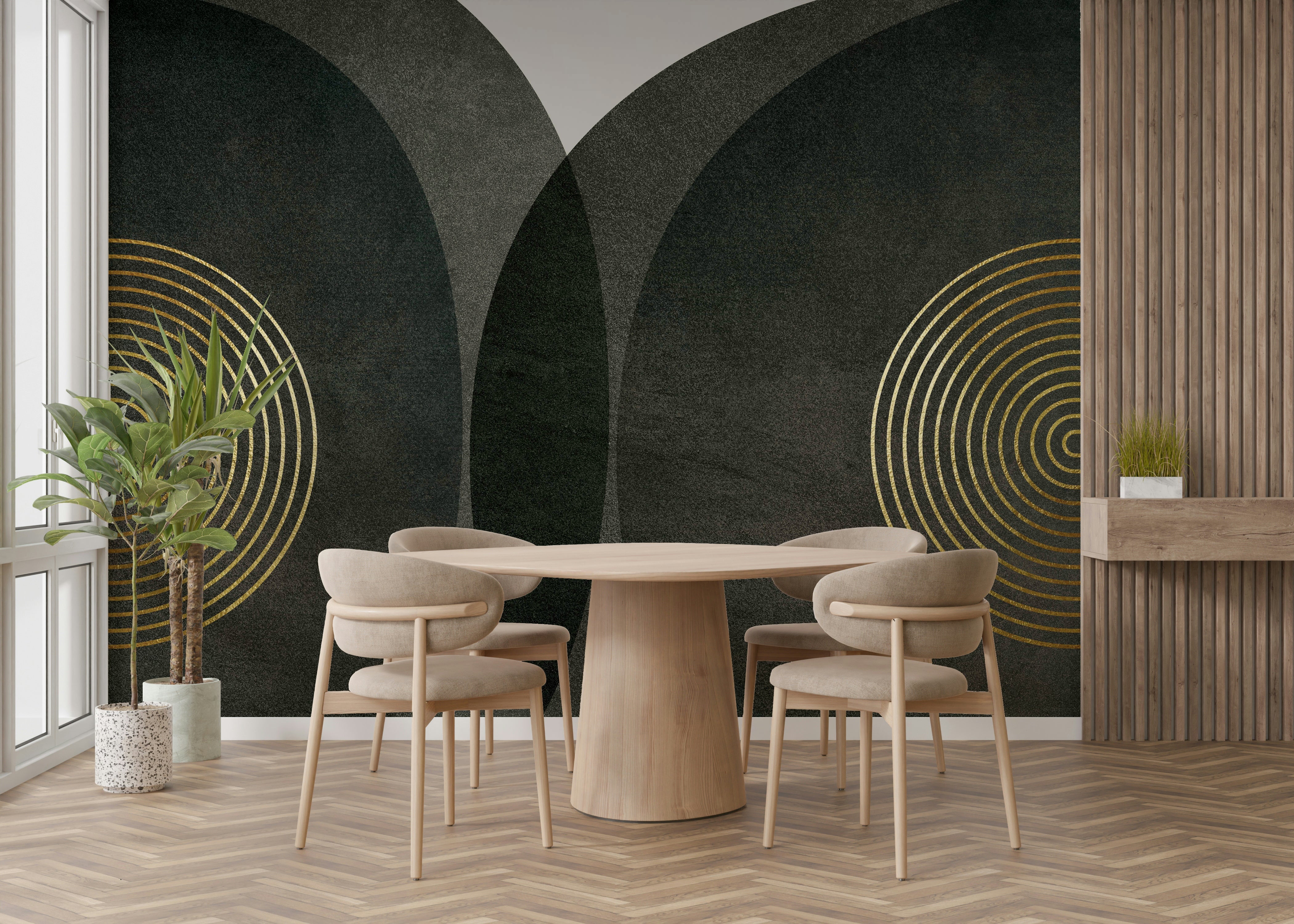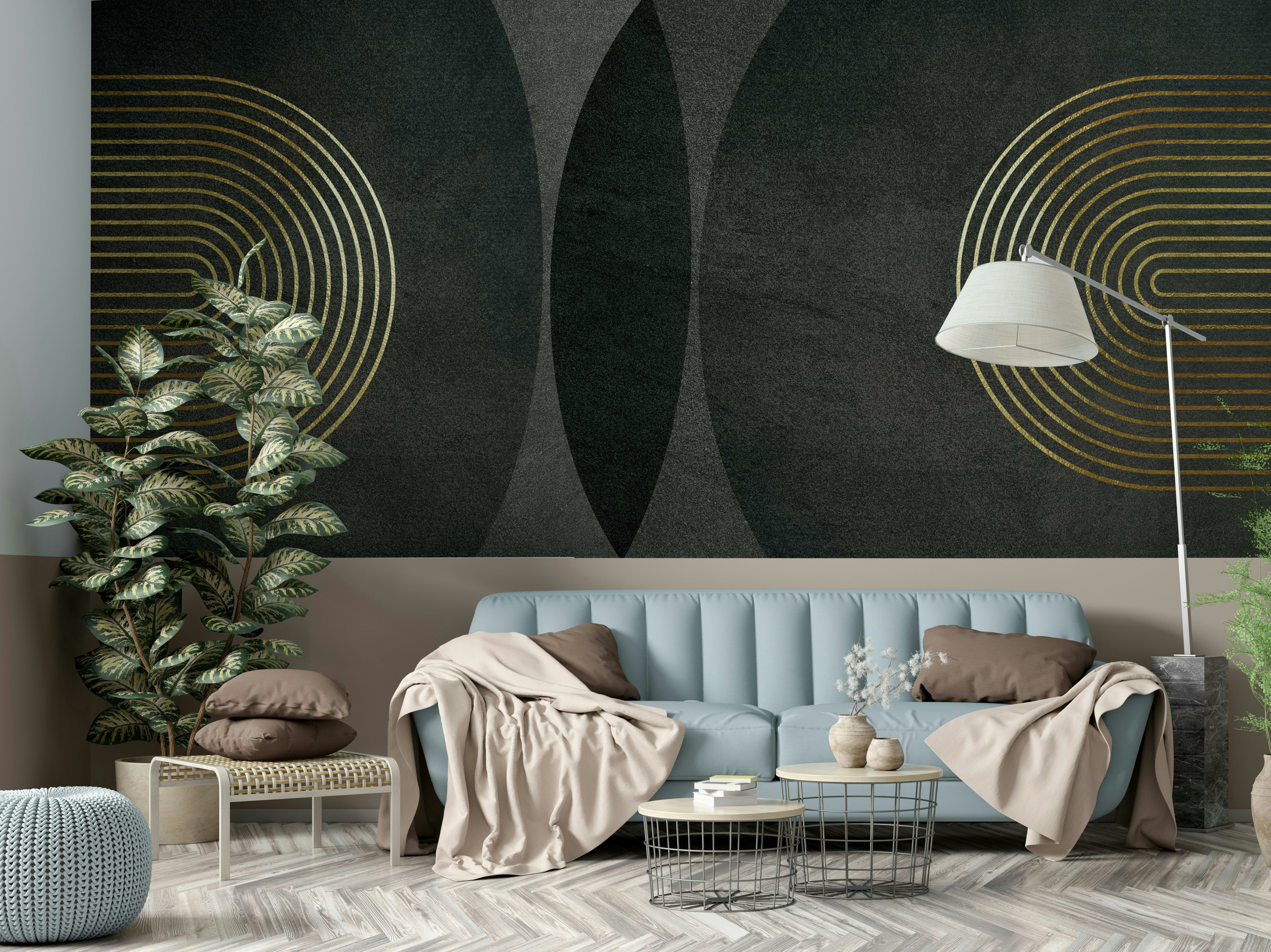 Modern Mid Century Charcoal Gold Wall Mural