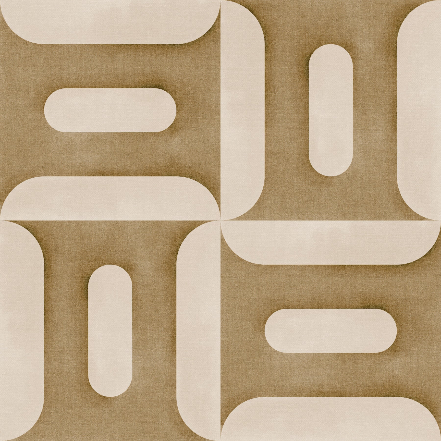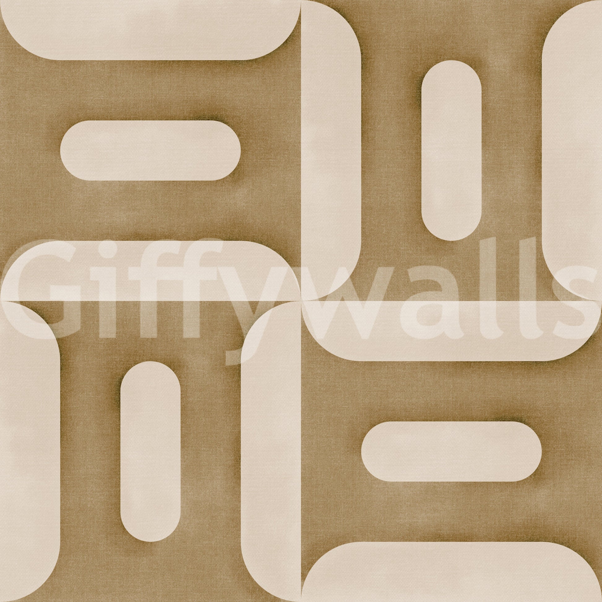 Introduce a touch of mid-century modern sophistication to your space with "Modern Textured Geometries Camel." This design features a captivating interplay of rounded geometric forms in a warm, inviting palette of camel and creamy beige. The subtle textural effect adds depth and dimension, creating a tactile experience that enhances the visual appeal. The repeating pattern offers a sense of rhythm and balance, making it an ideal choice for creating a feature wall or adding a subtle statement to any room. Evoking a sense of calm and understated luxury, this wall covering provides a versatile backdrop that complements a range of interior styles, from minimalist to eclectic. The neutral color scheme ensures it blends seamlessly with existing decor while adding a touch of refined character. Elevate your interior aesthetic with this timeless geometric design.