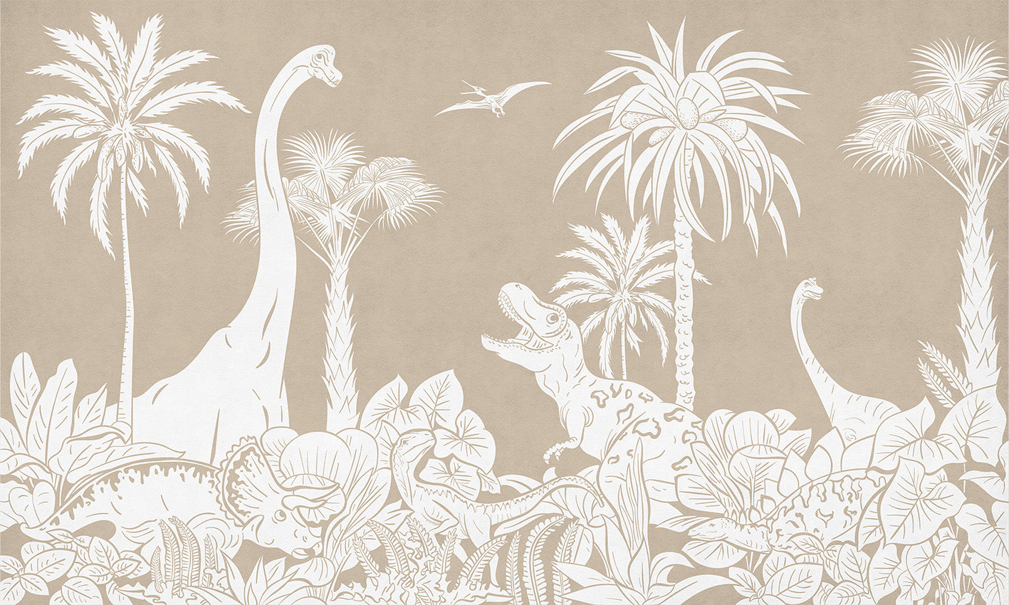 Monochrome Dino Brown wallpaper with dinosaurs and palms