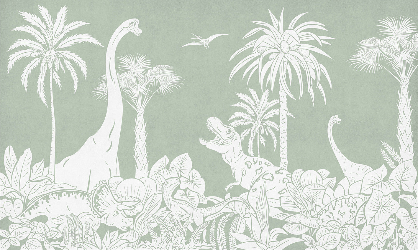 Bring prehistoric adventures to your child's room with the monochrome dino green wall mural. This captivating boys wallpaper features intricate dinosaur illustrations set against a soothing green backdrop, creating an engaging and imaginative environment. Perfect for boys who love dinosaurs, this wall mural adds a touch of excitement and fun to any space. Let your child's imagination run wild as they explore the world of dinosaurs every day. The detailed design and high-quality material ensure durability and vibrant colours, making it a great addition to your home. Order now and give your child the room of their dreams.