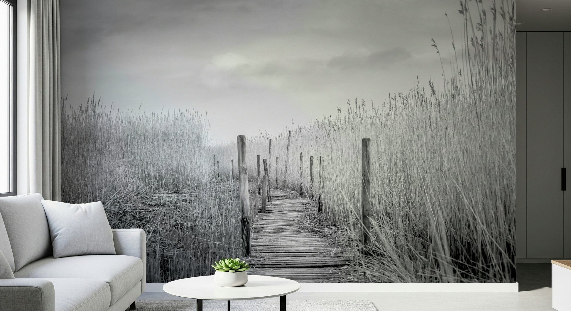 Monochrome Marsh Path Wall Mural -2487649