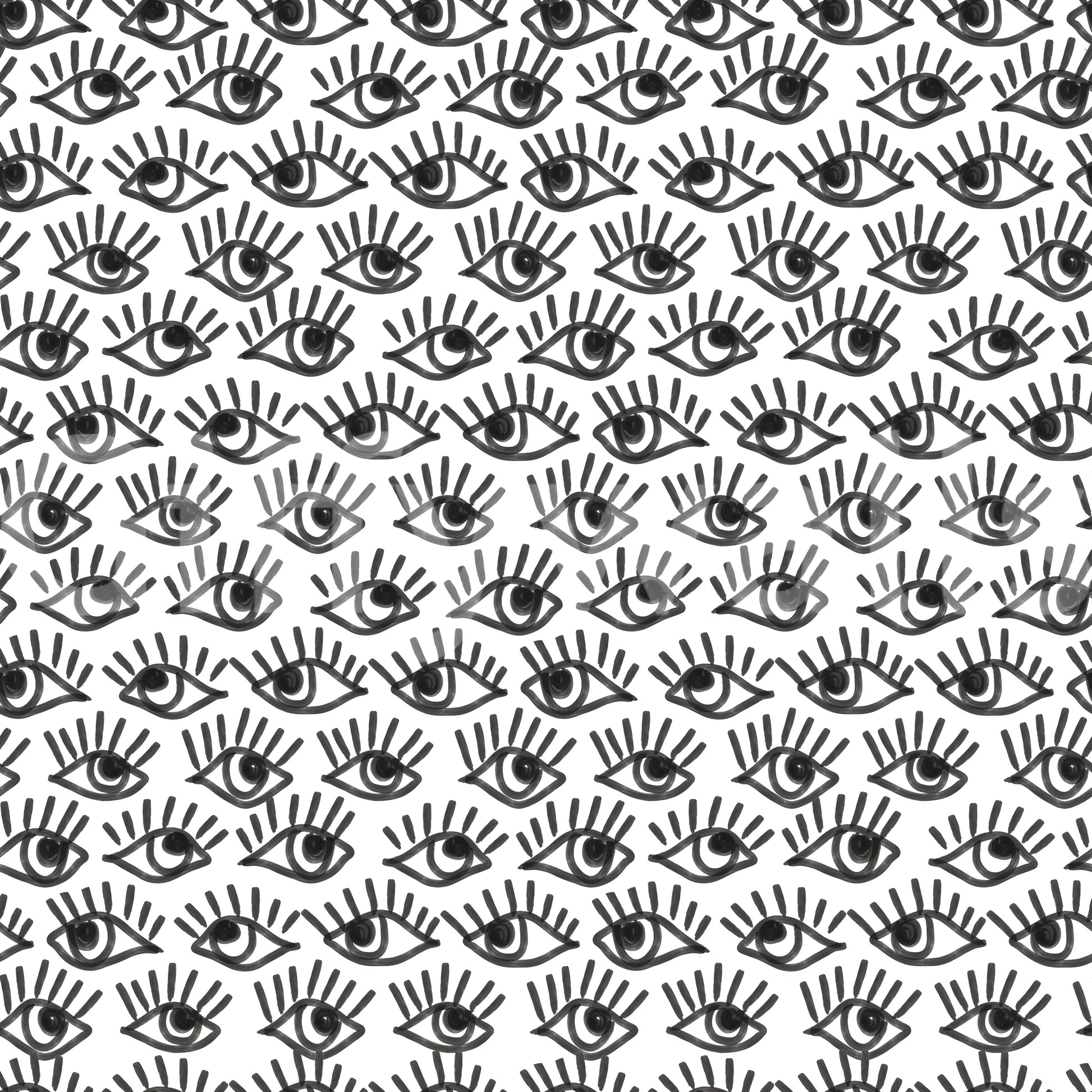 Monochrome Staring Eyes Wall Mural featuring bold black-and-white staring eyes pattern.