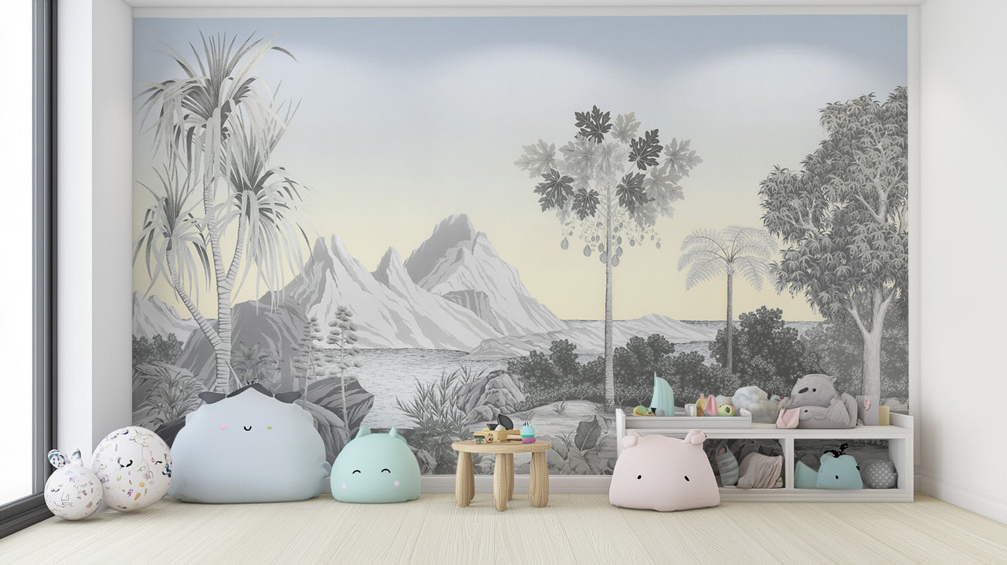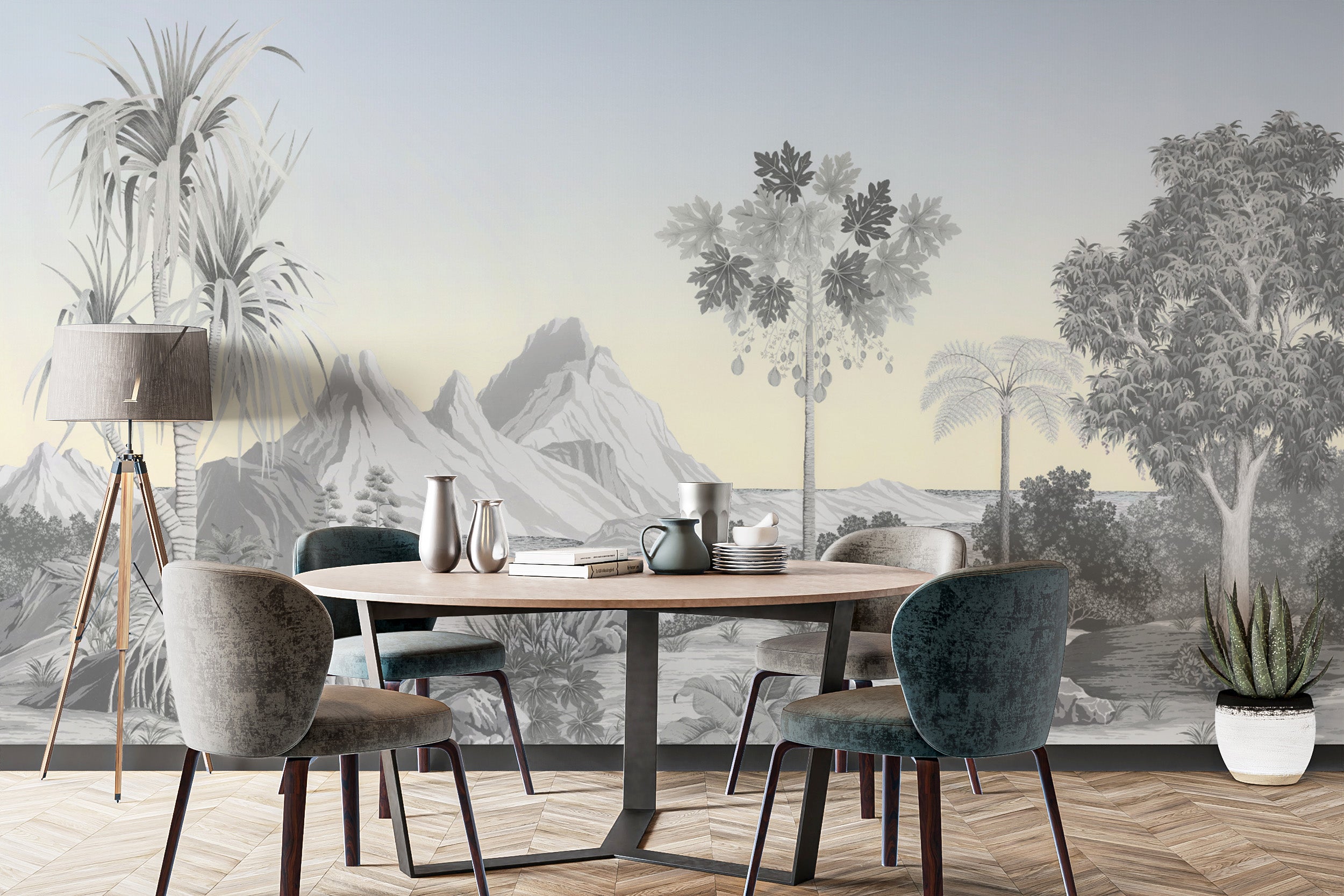 Make your space unique with the monochrome tropical botanical wall mural, a beautiful harmony of class and nature. With black and white tropical traditional mural art, this design displays exotic trees, tall vegetation, and a quiet coastline. The paulownia monochrome botanical paper makes a polished, antique statement and lends itself well to contemporary, formal, or minimalist interiors. Thanks to its intricate detailing and cool tones, it produces a calming effect ideal for bedrooms, living areas, or offices. Crafted for simple fitting and robustness, this black-and-white natural landscape wallpaper turns every room into a sophisticated paradise. Timeless loveliness for your walls from this nature-touched work of art.