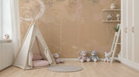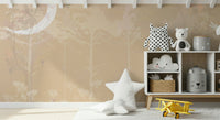 Drift into a realm of fantasy with this enchanting wallpaper for walls. Soft beige tones blend with delicate floral and tree silhouettes, crowned by a crescent moon. Fairy and unicorn motifs spark imagination. This design transforms nurseries, bedrooms, and playrooms into tranquil havens. Its muted palette ensures it complements rather than overwhelms, creating a balanced and inviting atmosphere. The subtle patterns welcome dreams, stories, and joyful play, offering a serene backdrop for childhood adventures.