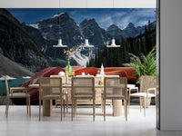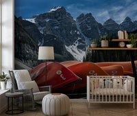 Capture the spirit of adventure with this scenic wallpaper. Bright canoes contrast with the majestic snow-capped mountains and serene lake. The palette is perfect for adding a burst of color. Bring the outdoors in with wallpaper for walls that makes a statement in living rooms, bedrooms, or office spaces. Transform your interior with the beauty of the Canadian Rockies and a promise of summer recreation.
